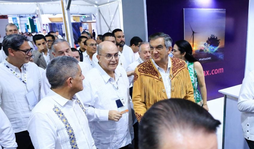 -El gobernador Américo Villarreal y el director general de Pemex, Octavio Romero Oropeza, presiden en Tampico el inicio del evento más importante de la industria petrolera