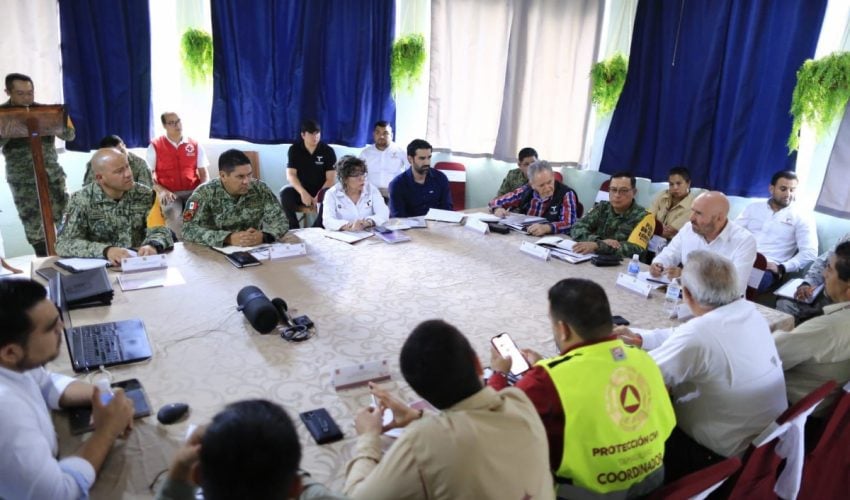 Por parte del Gobierno del Estado también participaron en esta reunión: Pedro Cepeda Anaya, secretario de Obras Públicas; Silvia Casas, secretaria de Bienestar, así como representantes del DIF Estatal y de la Cruz Roja.