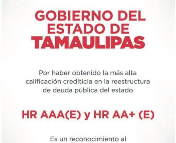 Obtiene Tamaulipas la más alta calificación crediticia en reestructura de deuda