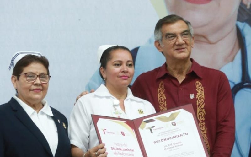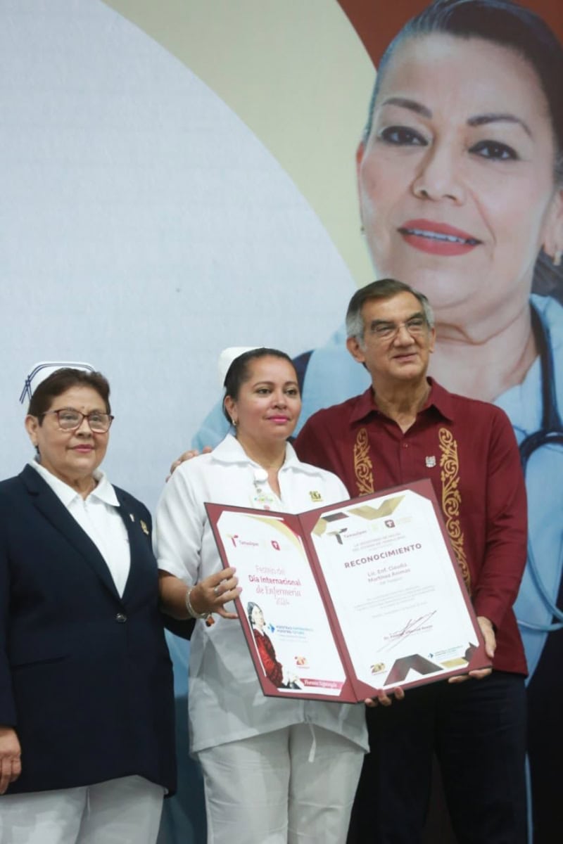 En el evento se entregaron reconocimientos a enfermeras y enfermeros del IMSS, ISSSTE, IMSS-Bienestar, hospitales navales, de Pemex, SEDENA, así como Cruz Roja, Sistema DIF Tamaulipas, Sistemas DIF municipales y unidades de la Secretaría de Salud, destacando a María Teresa Rodríguez Lorenzo por 52 años de servicio; María Reyna De la Fuente Ríos por 50 años, y Teresa de Jesús Loredo Álvarez por 42 años de trabajo como enfermera.