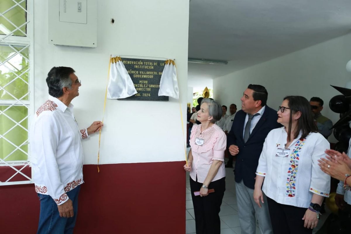 Luego de develar la placa de remodelación del plantel que lleva el nombre del exgobernador Norberto Treviño Zapata y de entregar reconocimientos a los alumnos y alumnas más destacados del ciclo escolar en los seis grados, el jefe del Ejecutivo Estatal agradeció la bienvenida del director Said González Sandoval y felicitó a madres y padres de familia y al personal docente que hicieron posible que un grupo de 17 alumnos terminara su educación primaria.