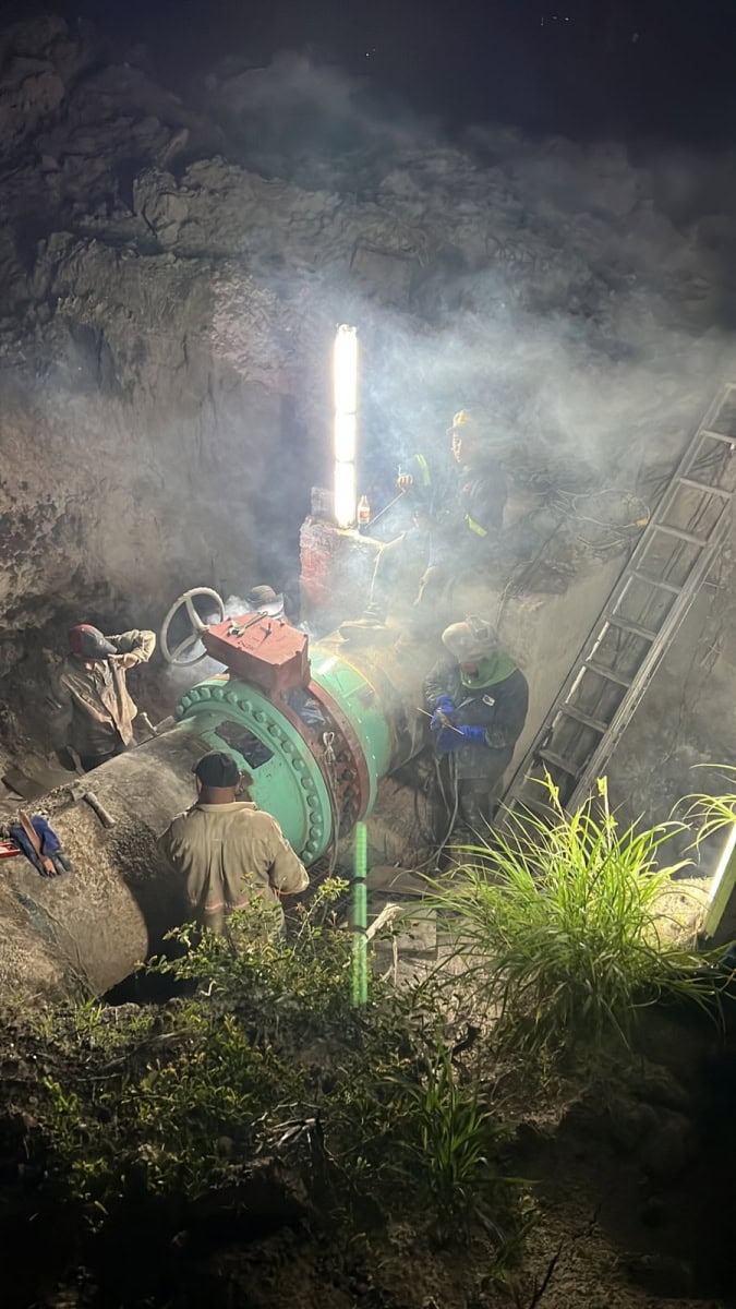 Actualmente, se han concluido los trabajos en las plantas de rebombeo 1 y 2, donde se realizó el retiro y colocación de válvulas de 12, 20 y 36 pulgadas, así como tubería de acero. La primera intervención se llevó a cabo el pasado 5 de abril, continuando este viernes 5 y sábado 6 de julio para su culminación. Finalizando los trabajos y restableciendo el suministro del vital líquido en la ciudad capital, este sábado a las 18:05 hrs después de 36 horas de labores ininterrumpidas.