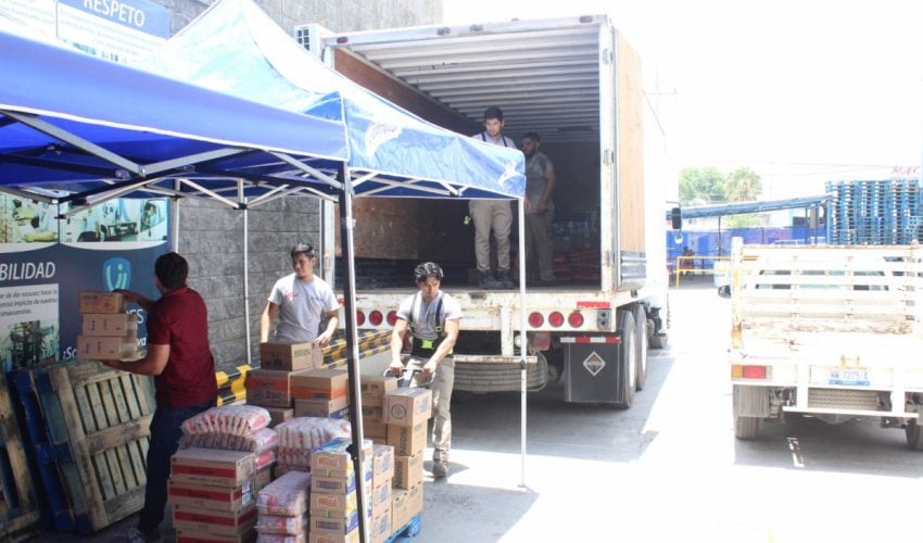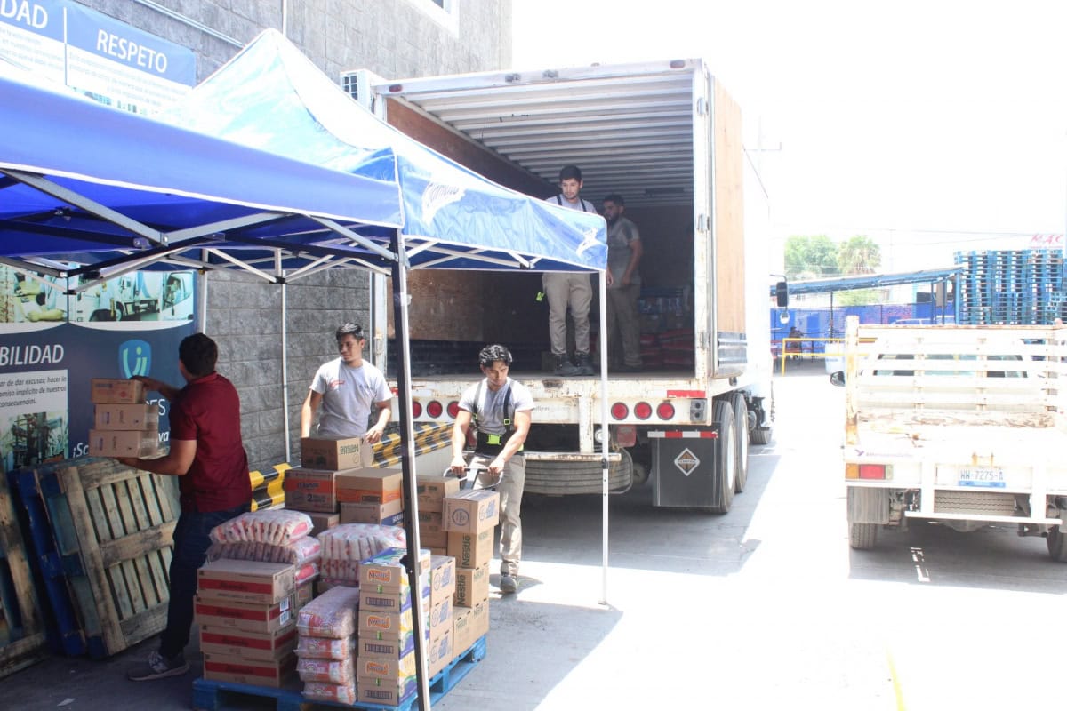 A estas se suman siete toneladas de víveres donados por Fundación Walmart, cinco toneladas y media de agua embotellada y leche por parte de FEMSA, más de 4 mil 500 productos alimenticios y de limpieza por Fundación Soriana y 3 mil 400 por parte de Grupo Ibarra.