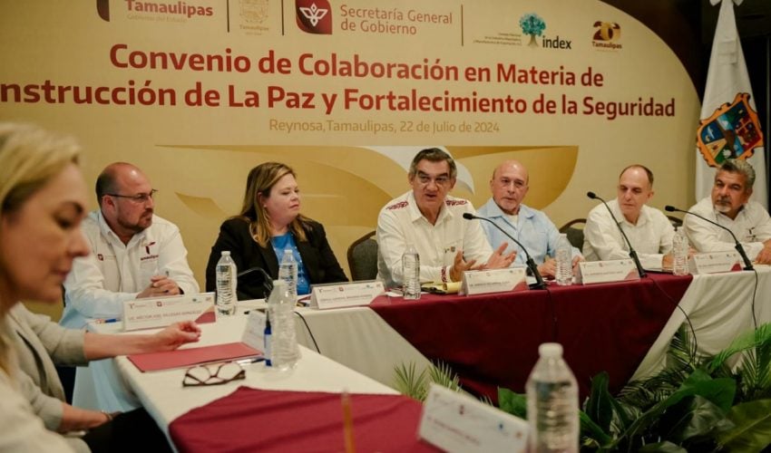 Previo a este evento, se realizó la firma del convenio de colaboración en materia de construcción de la paz y fortalecimiento de la seguridad, entre el Gobierno de Tamaulipas e INDEX.