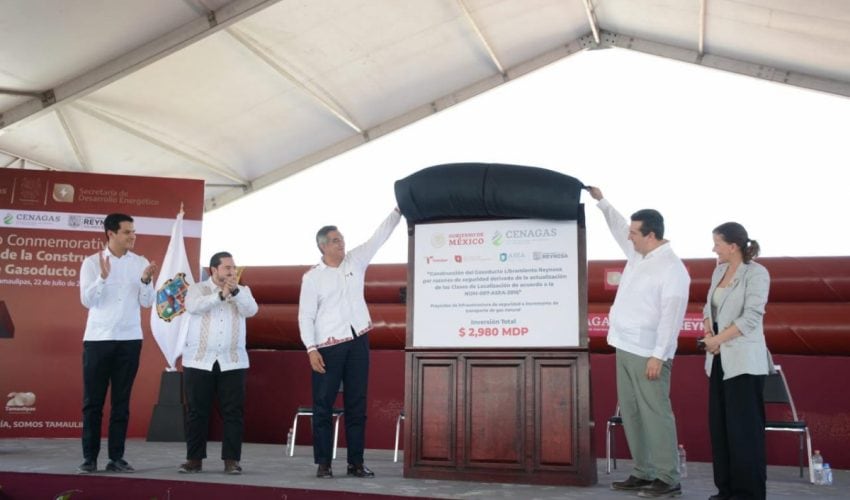 Agregó que la construcción del gasoducto Libramiento Reynosa tiene una fecha estimada de inicio de operaciones para el 31 de julio de 2025 y confió en que este libramiento mejora las condiciones de seguridad en la población y permite recuperar la capacidad de transporte para atender esta demanda prospectiva.