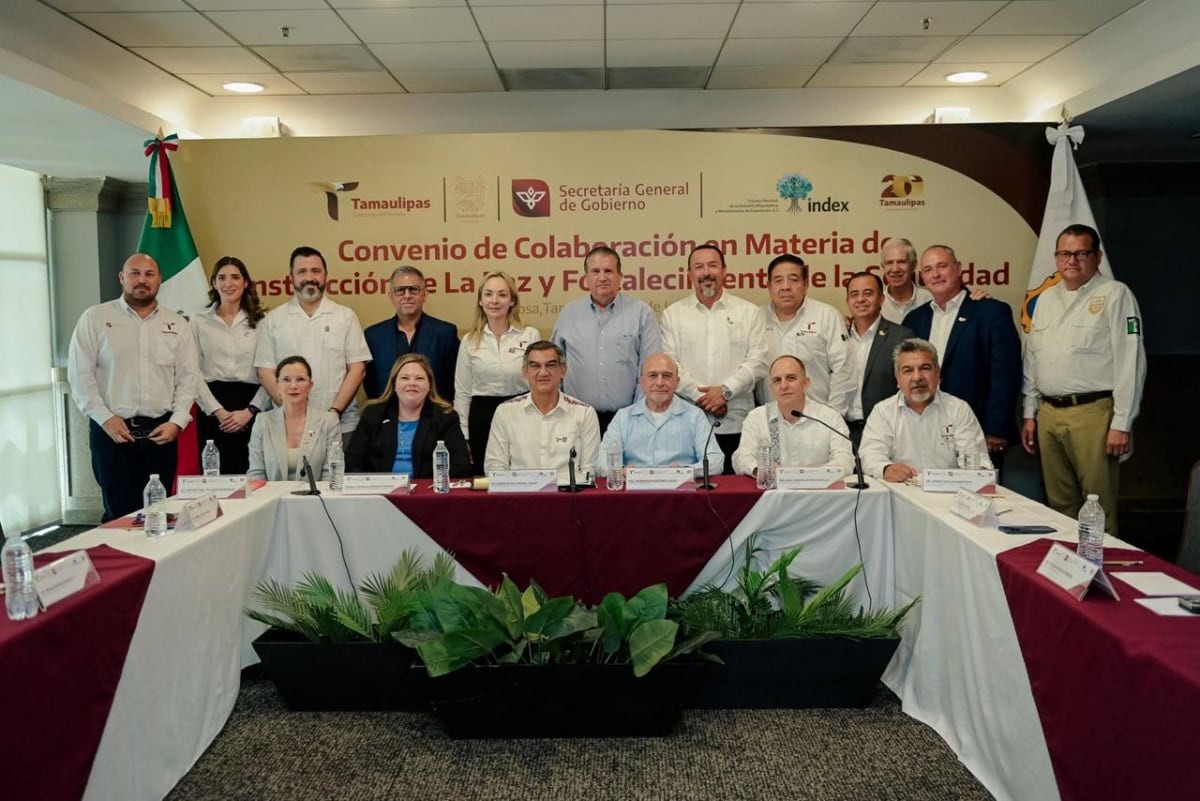 Previo a este evento, se realizó la firma del convenio de colaboración en materia de construcción de la paz y fortalecimiento de la seguridad, entre el Gobierno de Tamaulipas e INDEX.