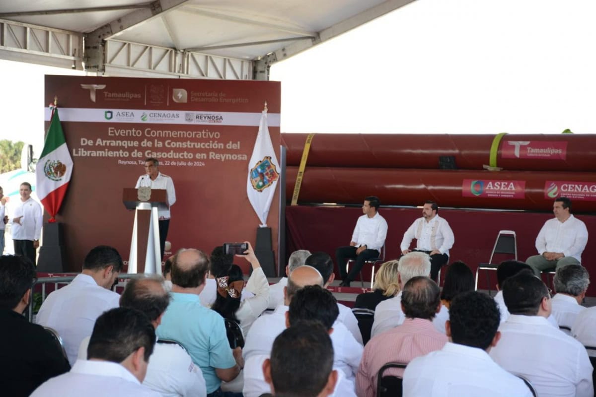 Agregó que la construcción del gasoducto Libramiento Reynosa tiene una fecha estimada de inicio de operaciones para el 31 de julio de 2025 y confió en que este libramiento mejora las condiciones de seguridad en la población y permite recuperar la capacidad de transporte para atender esta demanda prospectiva.