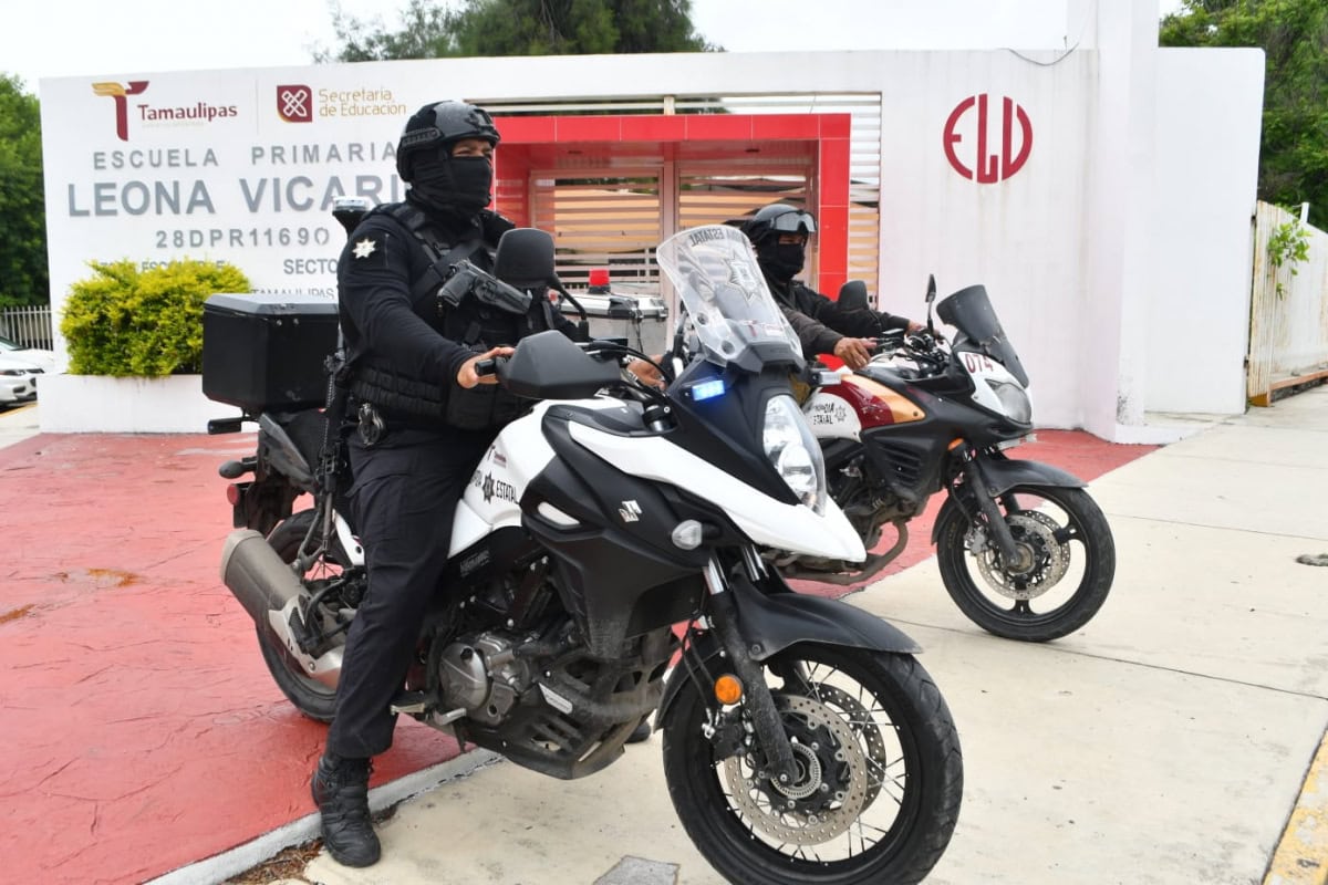 Ciudad Victoria, Tamaulipas – Con la finalidad de preservar la seguridad en los planteles educativos de la entidad, personal de la Guardia Estatal mantendrá la vigilancia a través del operativo “Escuela Segura”, el cual redoblará la presencia policial durante el periodo vacacional.