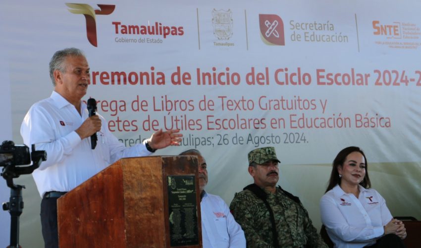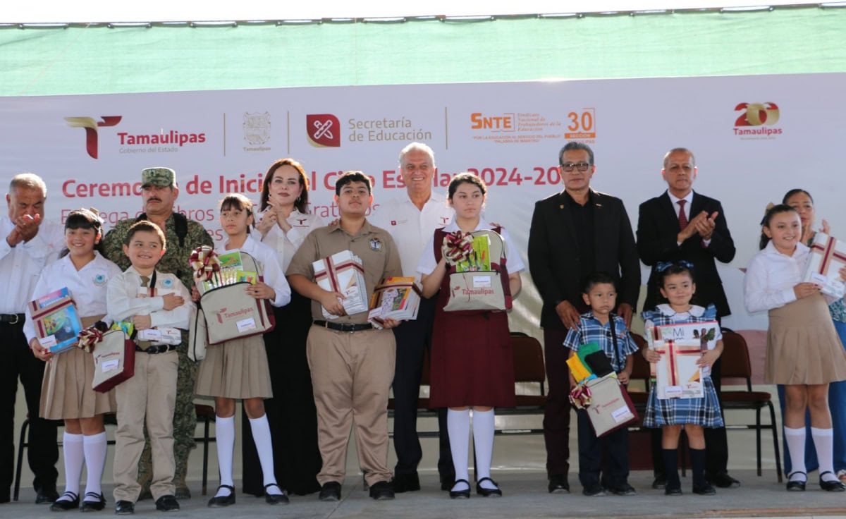 “El Gobierno de la Transformación ha hecho de Tamaulipas un estado humanista, que se preocupa por el bienestar de sus niñas, niños y adolescentes, y para apoyar en la economía familiar, destinó más de 340 millones de pesos para otorgar lo necesario a los estudiantes como paquetes de útiles escolares y uniformes de manera gratuita para este nuevo ciclo escolar”, destacó Hernández Navarro durante su discurso.