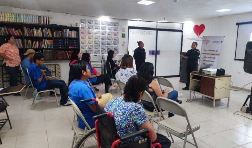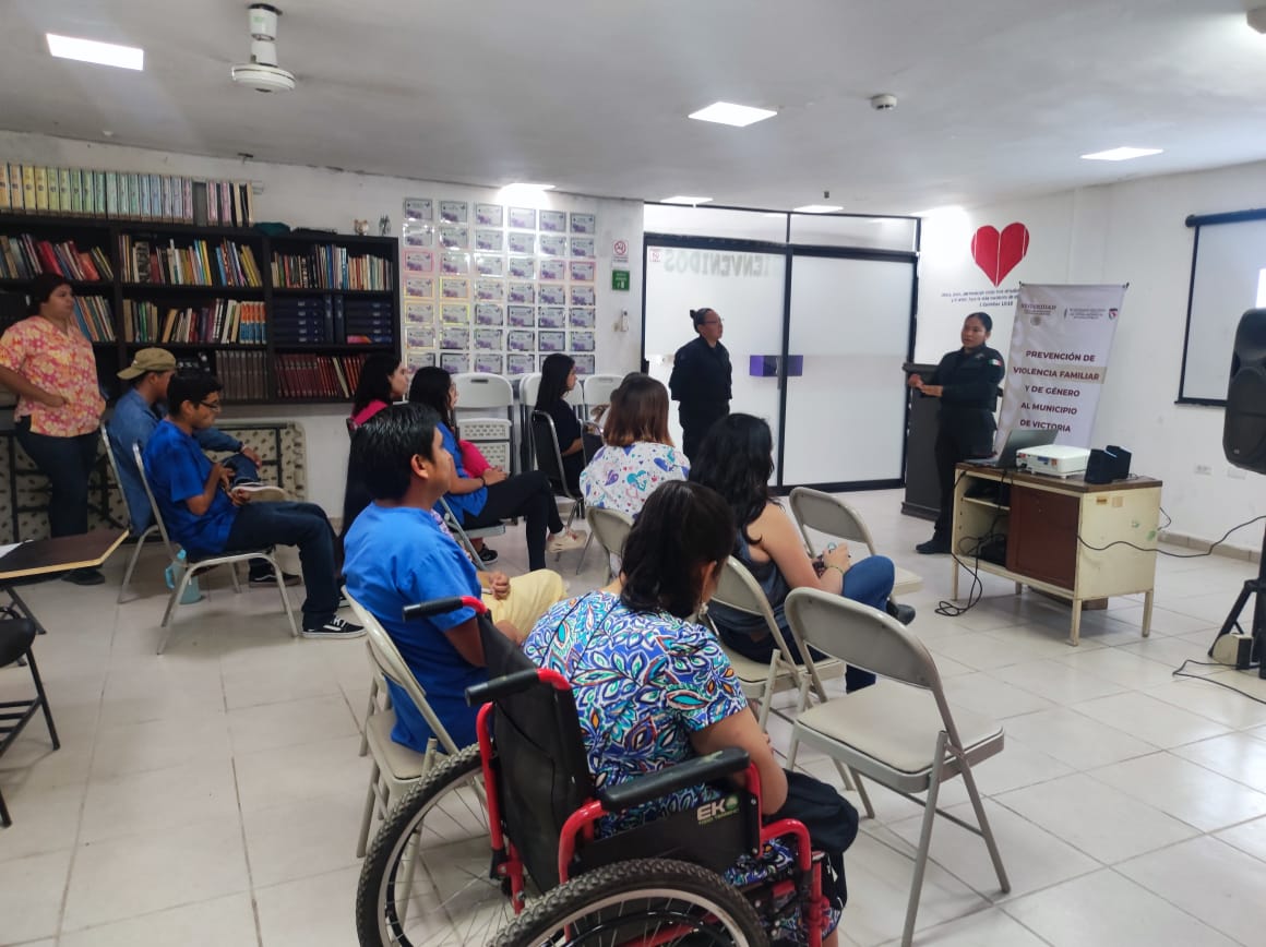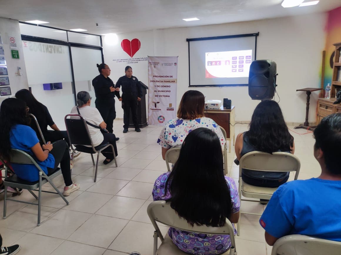 Ciudad Victoria, Tamaulipas.-Muestra del trabajo conjunto entre sociedad y gobierno para prevenir, atender y erradicar la violencia en contra de niñas, adolescentes y mujeres, personal de la Guardia Estatal de Género impartió un taller a integrantes de la asociación civil “Vive Mujer”.