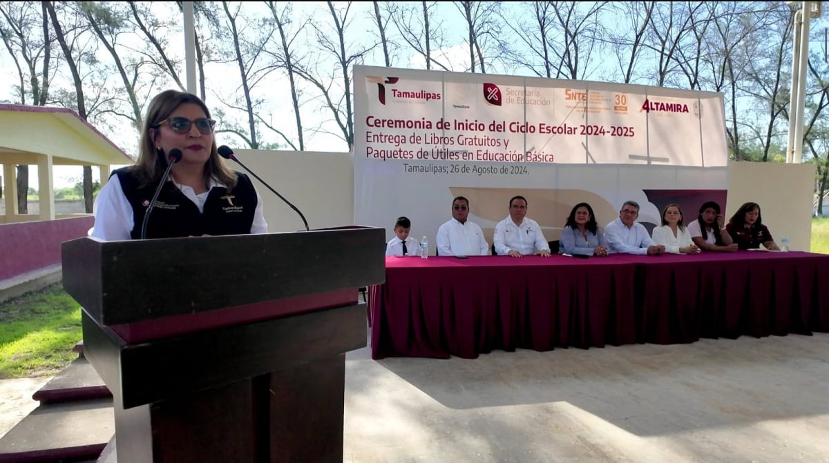 La funcionaria estatal informó que en Altamira se entregaron 42,391 paquetes de útiles escolares y 278,780 libros de texto, reforzando el compromiso del gobierno estatal con la educación de calidad y apoyando la economía familiar.