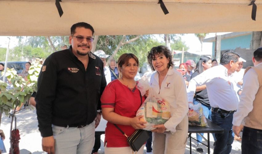Continuando con la gira de trabajo por la frontera, la secretaria de SEBIEN, Silvia Casas realizó la entrega de paquetes alimentarios en la Colonia Industrial de Reynosa.