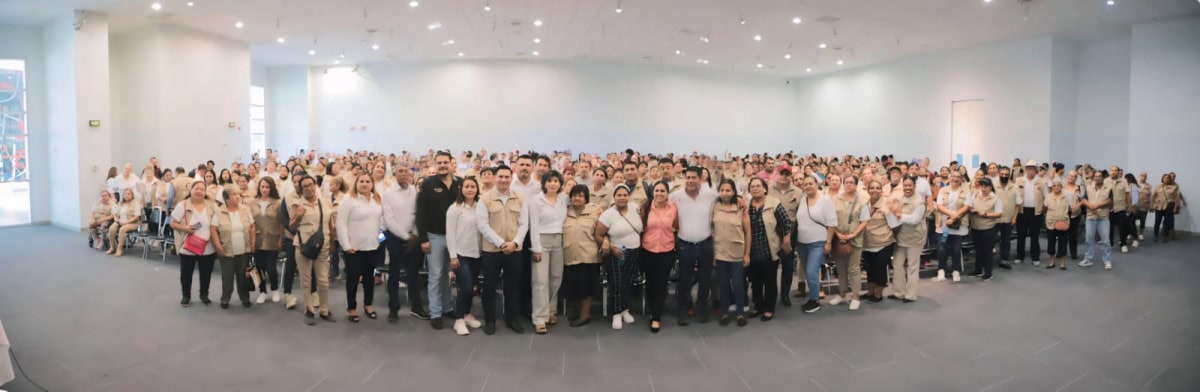 Posteriormente el equipo y la secretaria Casas se trasladaron al municipio de Reynosa, en dónde se reunió con poco más de 400 integrantes de la delegación de la SEBIEN en este municipio a quienes llevó el mensaje del gobernador Américo Villarreal Anaya, motivando a todo el equipo a seguir trabajando con un mismo fin, estar cercanos a la gente que más lo necesita.
