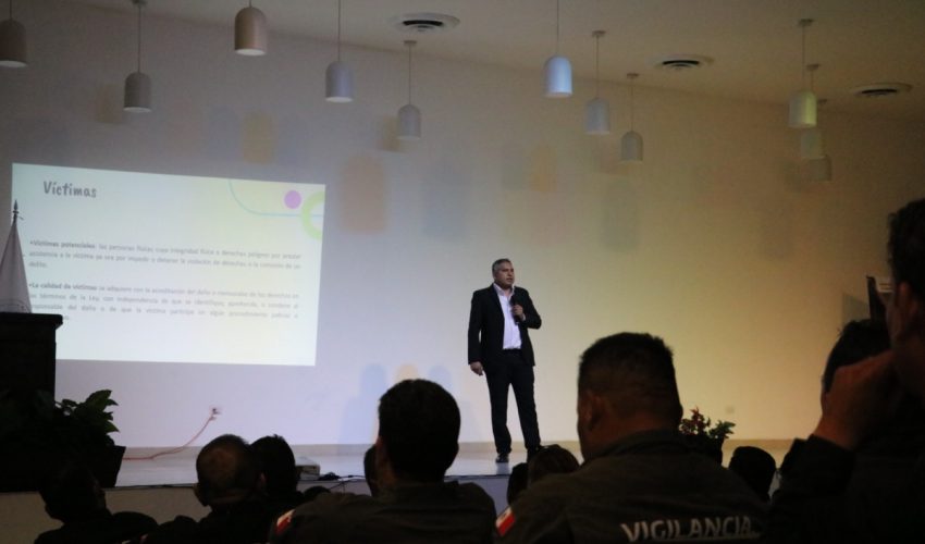 Esta capacitación estuvo a cargo del licenciado en Derecho, Reyes Eduardo Eguía Durán perteneciente a la CODHET y abordó temas como la Ley General de Víctimas y clasificación y calidad de víctimas.