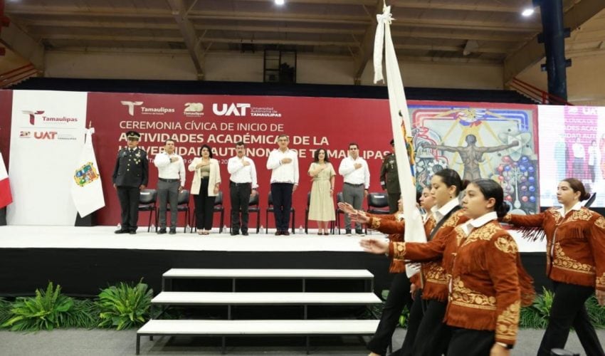 Al asistir a la ceremonia cívica de inicio de actividades académicas de la UAT, junto al rector Dámaso Anaya Alvarado, el gobernador refrendó todo su apoyo a la Máxima Casa de Estudios para lograr mayores oportunidades de desarrollo.