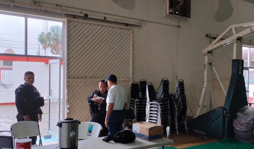 Una de las acciones efectuadas por elementos de esta corporación fue la realización de recorridos de seguridad perimetral en la Alberca Chávez, sitio habilitado como refugio temporal, hasta el momento, no hay personas albergadas en el sitio.