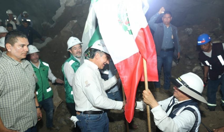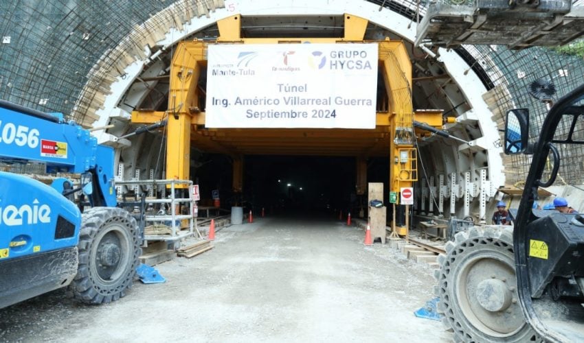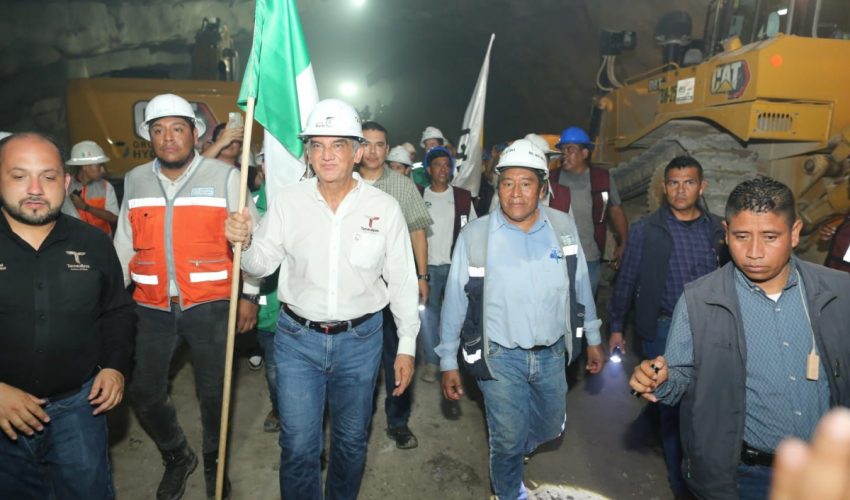 La tarde de este miércoles, el gobernador, acompañado por Alejandro Calzada Pratz, director general del Grupo Hycsa, y Ramón Alonso Casanova Hernández, CFO y CEO de Grupo Hycsa, caminó en el interior del túnel de 1,815 metros de longitud, el cuarto más largo de una autopista en México y único que se construyó en el gobierno de Andrés Manuel López Obrador, el cual lleva el nombre del exgobernador Américo Villarreal Guerra, para presenciar cómo dos máquinas excavadoras derribaron la pared de roca, logrando la interconexión, luego de varios meses de trabajo.