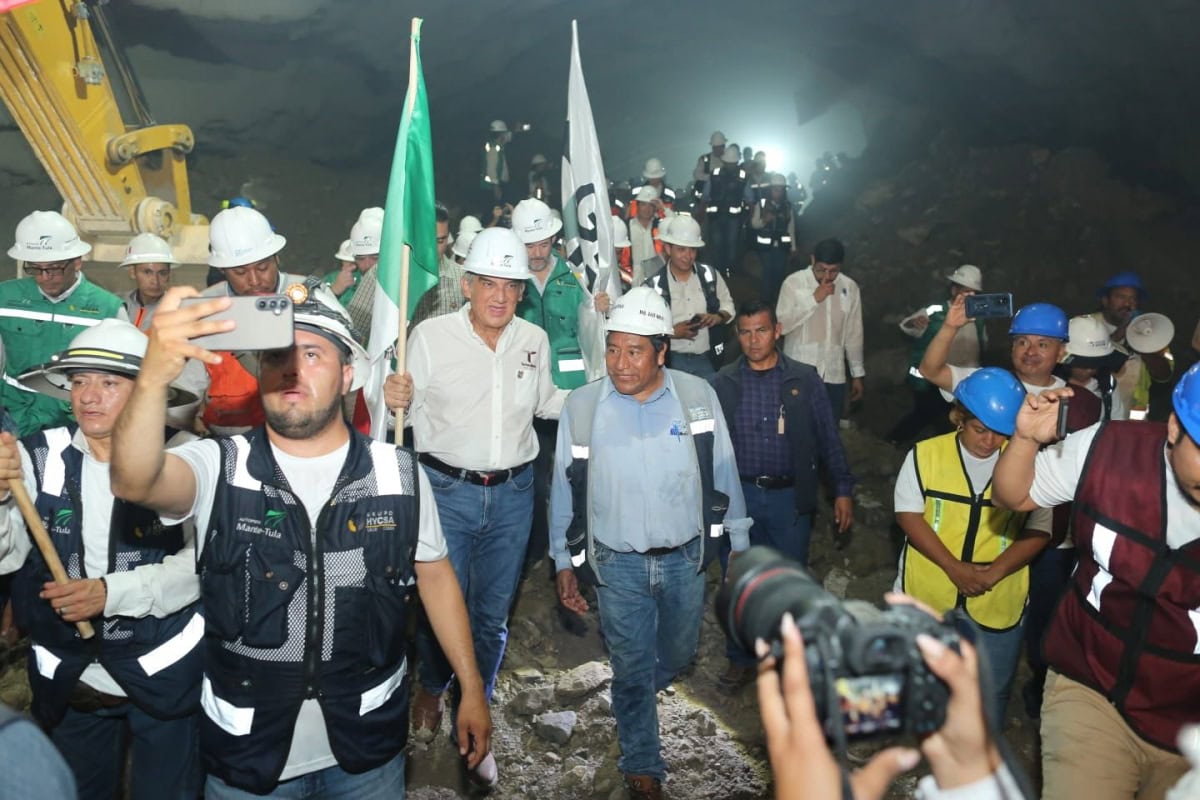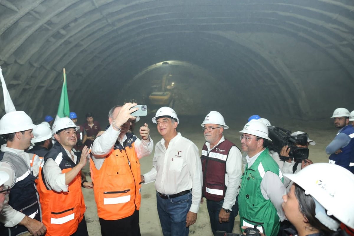 La tarde de este miércoles, el gobernador, acompañado por Alejandro Calzada Pratz, director general del Grupo Hycsa, y Ramón Alonso Casanova Hernández, CFO y CEO de Grupo Hycsa, caminó en el interior del túnel de 1,815 metros de longitud, el cuarto más largo de una autopista en México y único que se construyó en el gobierno de Andrés Manuel López Obrador, el cual lleva el nombre del exgobernador Américo Villarreal Guerra, para presenciar cómo dos máquinas excavadoras derribaron la pared de roca, logrando la interconexión, luego de varios meses de trabajo.