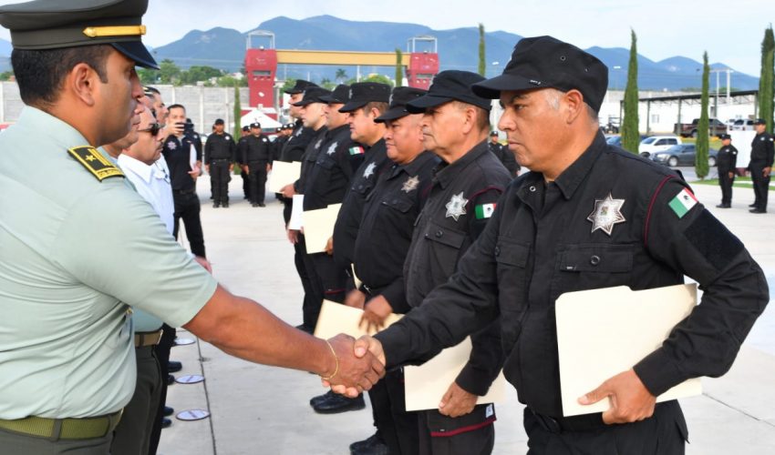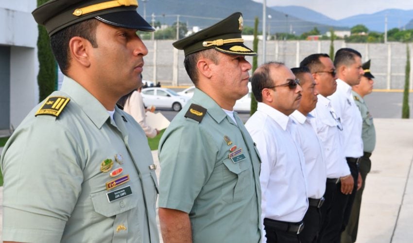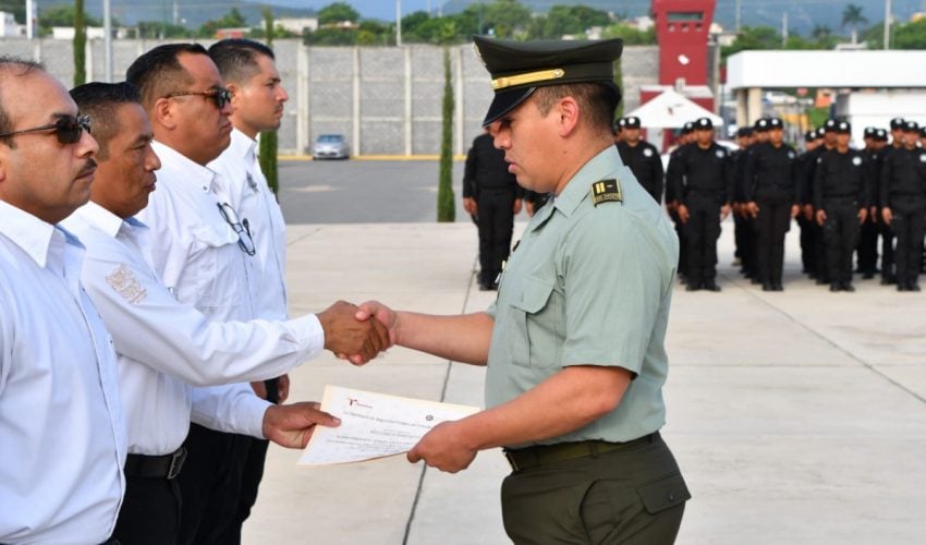 Con una ceremonia de honores celebrada en la explanada del Complejo Estatal de Seguridad Pública, se entregaron constancias al personal egresado y a los instructores de la Dirección de Antinarcóticos de la Policía Nacional de Colombia: Mayor, José Luis Saboya Fonseca; subintendente, Juan Carlos Campo Ortiz y el subintendente, Yeison Arley García Castañeda.