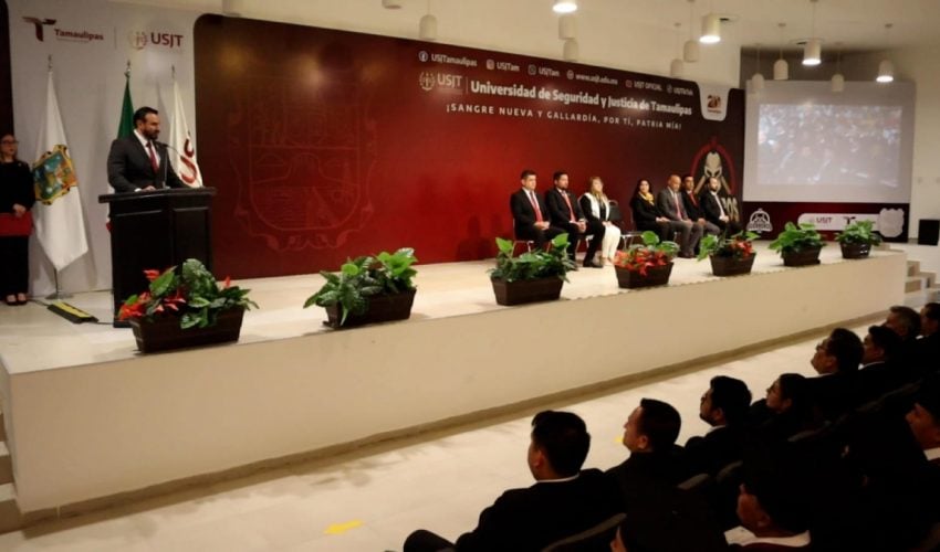 Ciudad Victoria, Tamaulipas.- “Siempre tengan presente que cuando se hable de Tamaulipas se escuche bien y que se reconozca, porque ustedes construyen la paz y la seguridad de nuestro estado”, dijo el rector de la Universidad de Seguridad y Justicia de Tamaulipas (USJT), Willy Zúñiga Castillo al presidir la ceremonia de fin de cursos de 60 graduados en Seguridad Pública y Ciencias Policiales.