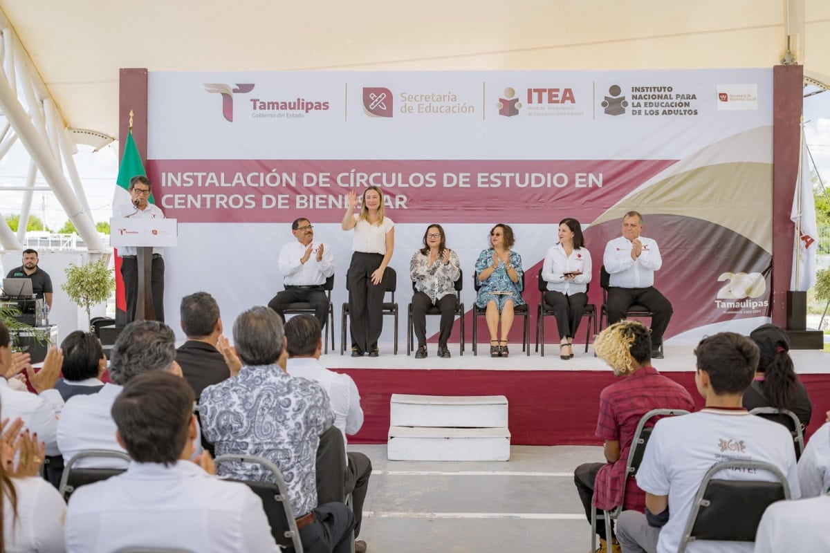 En representación del gobernador Américo Villarreal Anaya, la secretaria de Educación de Tamaulipas, Lucía Aimé Castillo Pastor, junto a Ixchel George Hernández, directora general del INEA, acompañadas por autoridades estatales y municipales se instaló oficialmente este círculo de estudio, que contribuirá a la transformación de las comunidades en donde se encuentre.