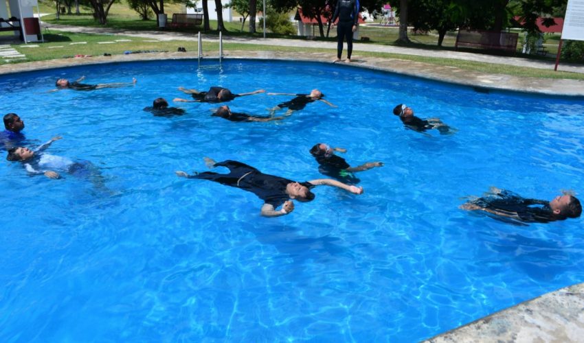 Guardia Estatal se capacita en rescate acuático y autosalvamento