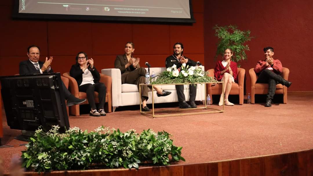 Durante el Segundo Encuentro de Estudiantes Tamaulipecos en Nuevo León, organizado por la Oficina de Representación de Tamaulipas en Nuevo León, y celebrado en la Biblioteca «Raúl Rangel Frías» de la Universidad Autónoma de Nuevo León, la secretaria de Educación, Lucía Aimé Castillo Pastor, y el secretario del Trabajo, Gerardo Illoldi Reyes, hicieron un llamado a los jóvenes universitarios a conocer las acciones y proyectos que impulsa el gobernador Américo Villarreal Anaya para lograr el desarrollo y bienestar de las y los tamaulipecos.