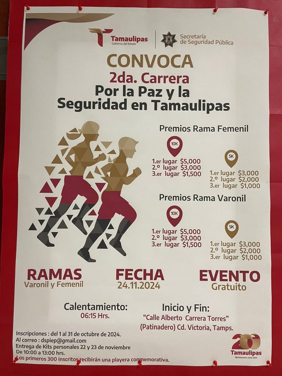Para mayor información respecto a las rutas, entrega de kits deportivos e inscripciones, se invita a la ciudadanía a seguir la página oficial de Facebook: Secretaría de Seguridad Pública Tamaulipas para recibir las actualizaciones correspondientes a este evento deportivo.