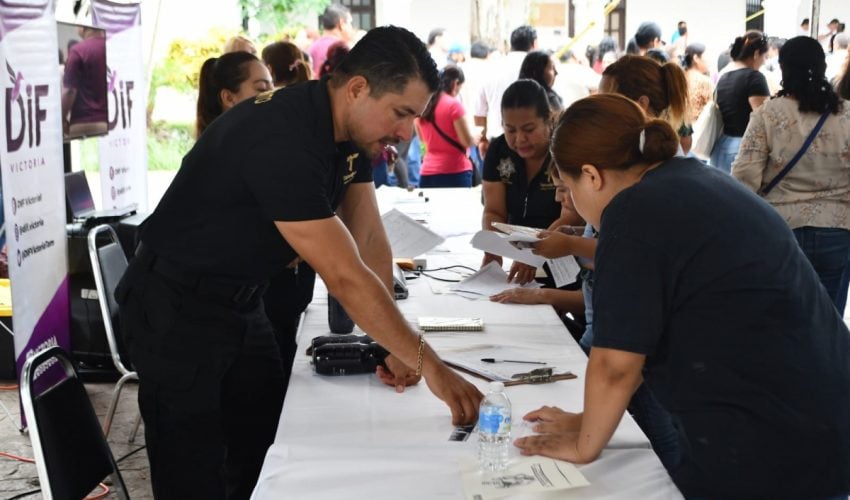 Ciudad Victoria, Tamaulipas.- Teniendo como principio la equidad de género, personal del área de reclutamiento de la Secretaría de Seguridad Pública de Tamaulipas (SSPT) participó en la Feria “Empleo para Todas” celebrada en la Presidencia Municipal de Ciudad Victoria.