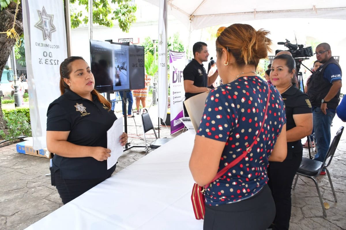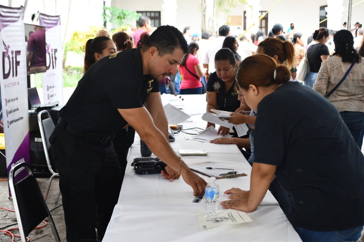 Ciudad Victoria, Tamaulipas.- Teniendo como principio la equidad de género, personal del área de reclutamiento de la Secretaría de Seguridad Pública de Tamaulipas (SSPT) participó en la Feria “Empleo para Todas” celebrada en la Presidencia Municipal de Ciudad Victoria.