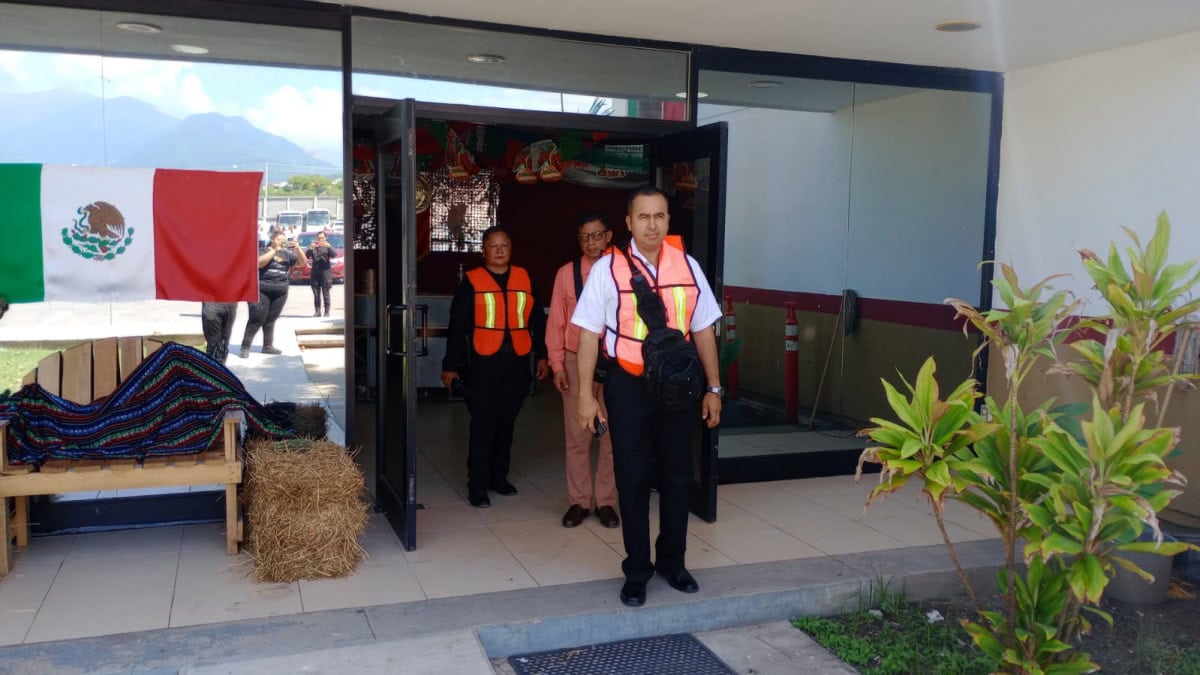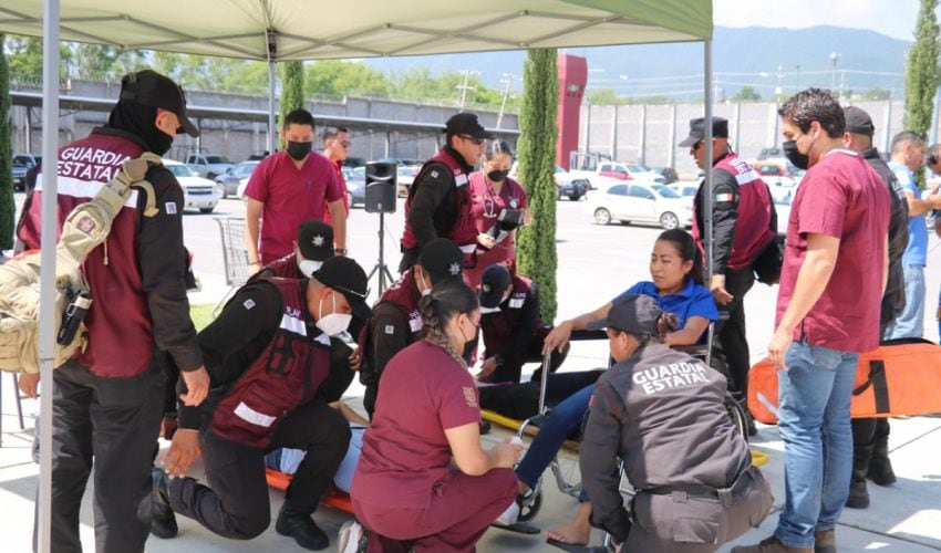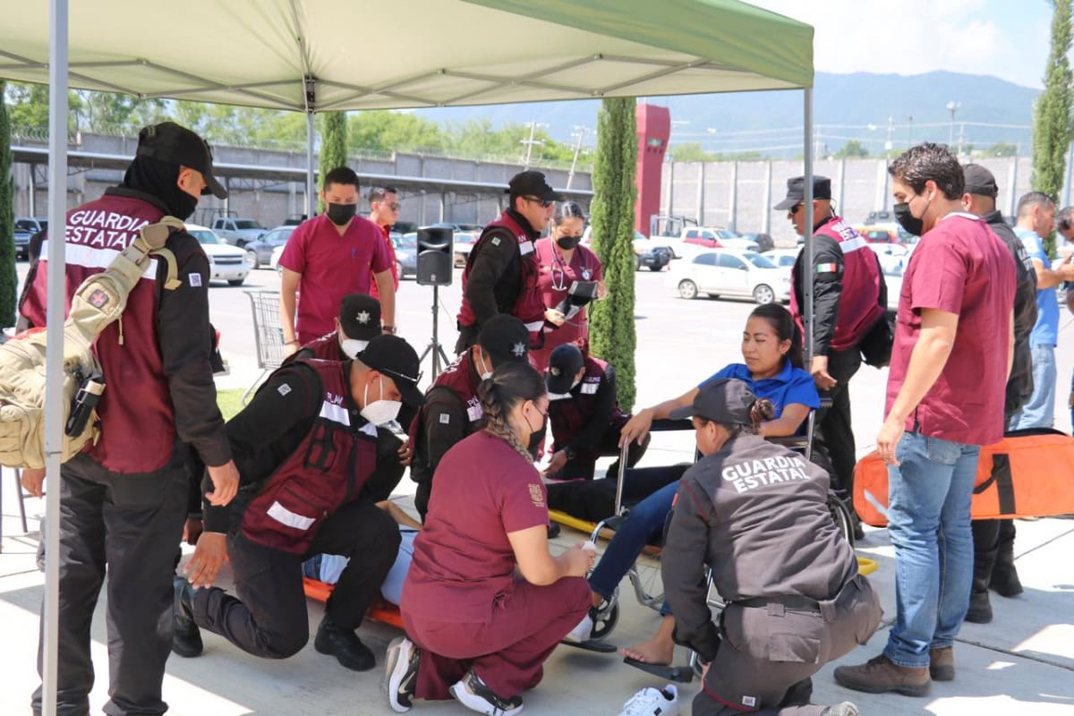 En la práctica realizada en el Complejo Estatal de Seguridad Pública de Tamaulipas se activó una alarma que indicó la evacuación del personal hacia la explanada principal, en donde se llevó a cabo un pase de lista y se simularon tres casos: quemaduras, inhalación de humo y lesiones por caídas.