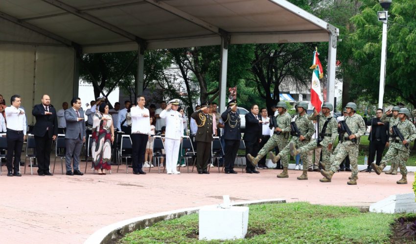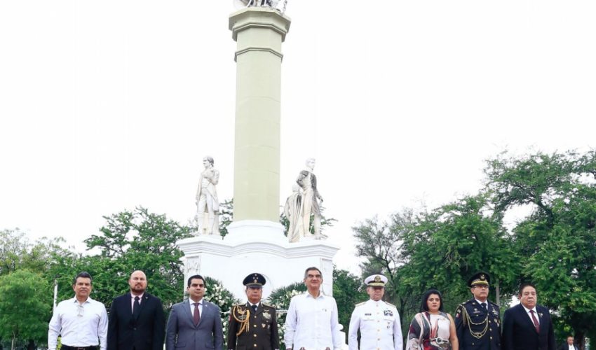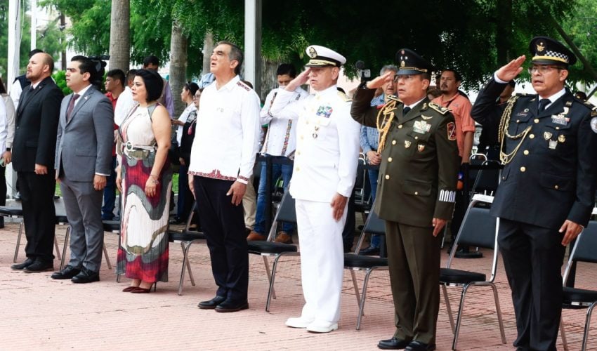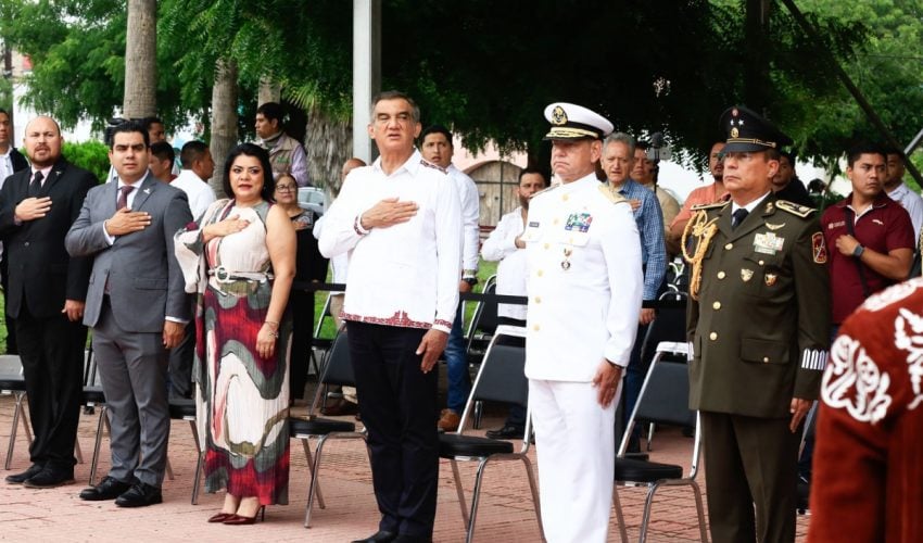 La ceremonia cívica se realizó en la Plaza de los Héroes, donde se rindieron honores a la bandera y se entonaron, con fervor patriótico, el Himno Nacional y el Himno a Tamaulipas y posteriormente se montó esta guardia de honor.