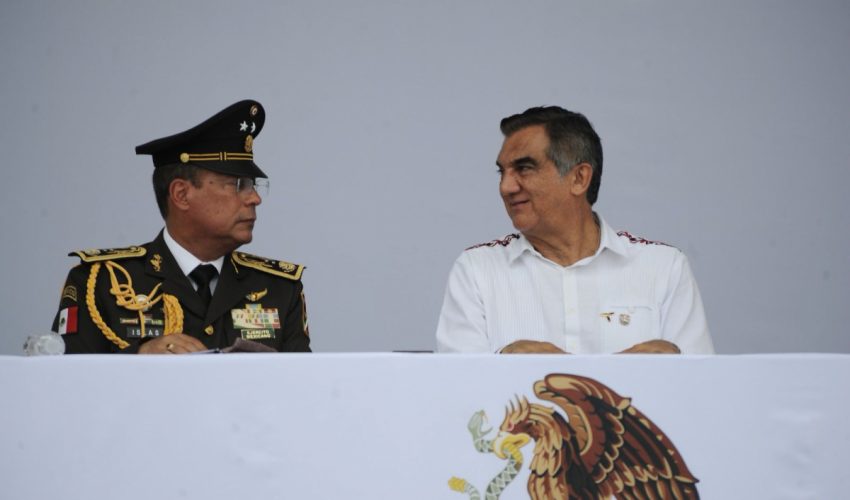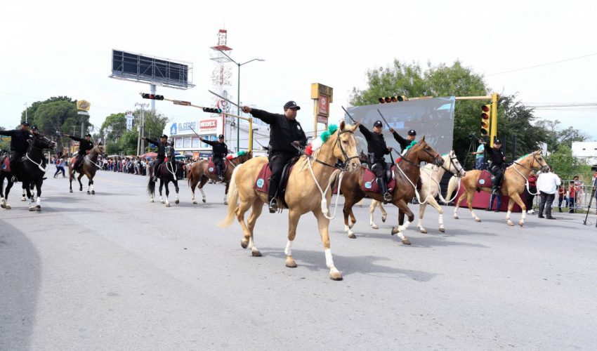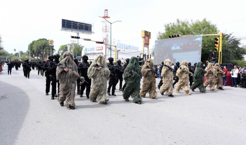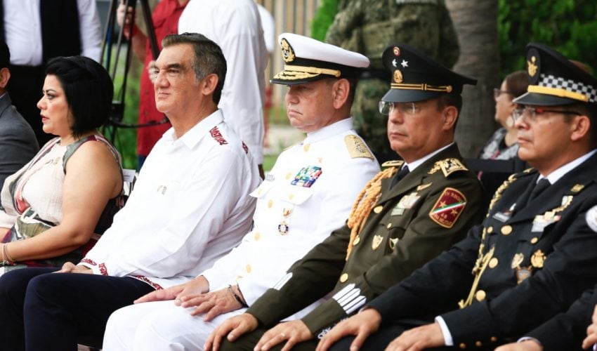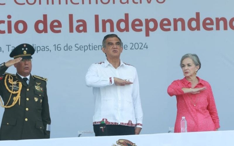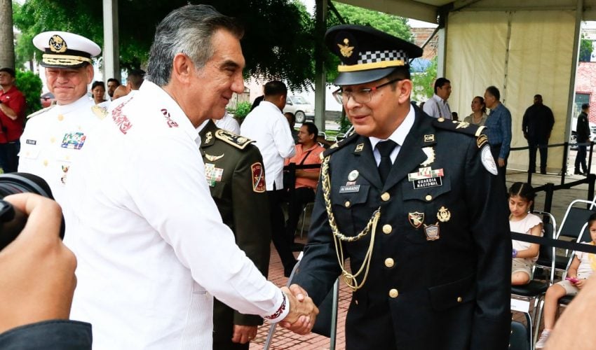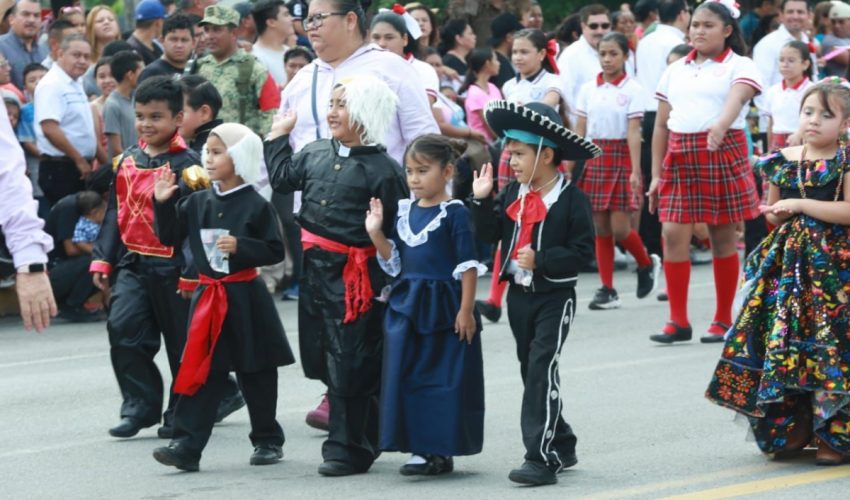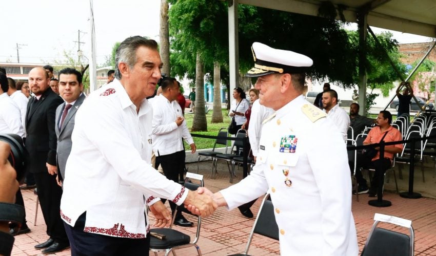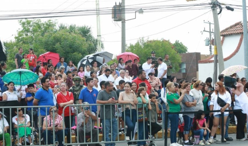 Acompañado por la presidenta del DIF Tamaulipas, María de Villarreal, así como por el general Julio César Islas Sánchez, comandante de la 48 Zona Militar, y el contralmirante Carlos Eduardo L’Eglise Escamilla, comandante de la Primera Región Naval, el gobernador presenció el paso de los contingentes a lo largo de la Avenida Tamaulipas, donde miles de familias tamaulipecas se congregaron.