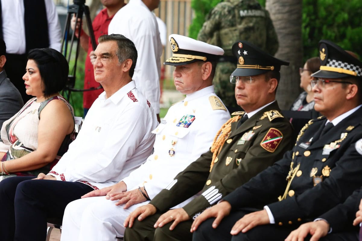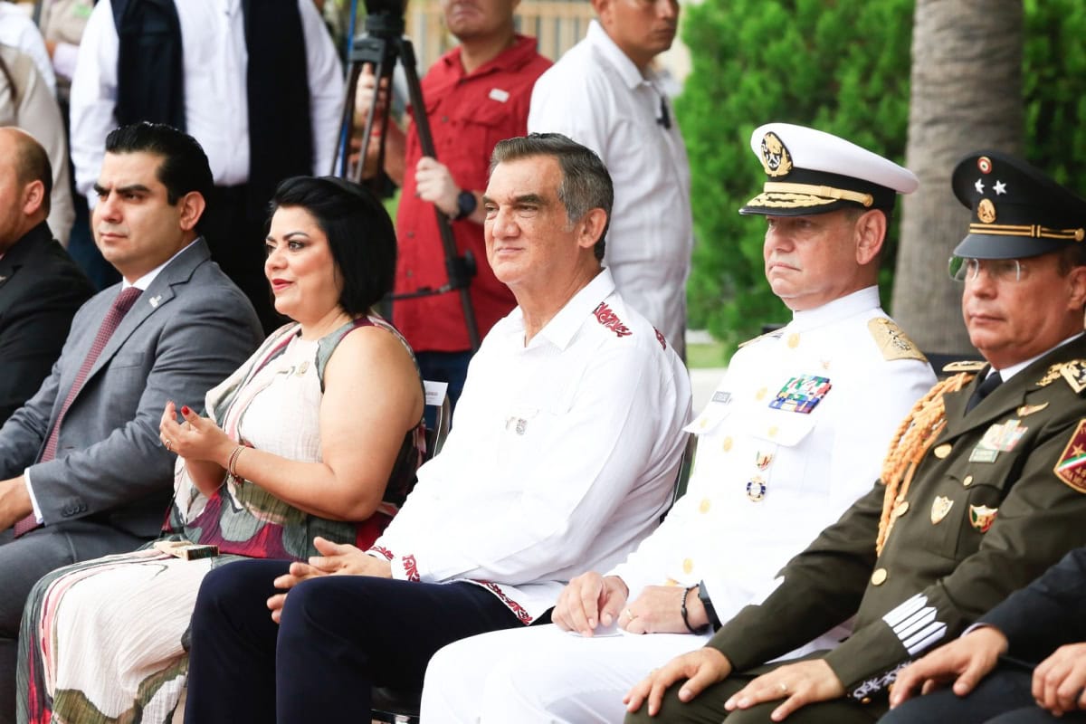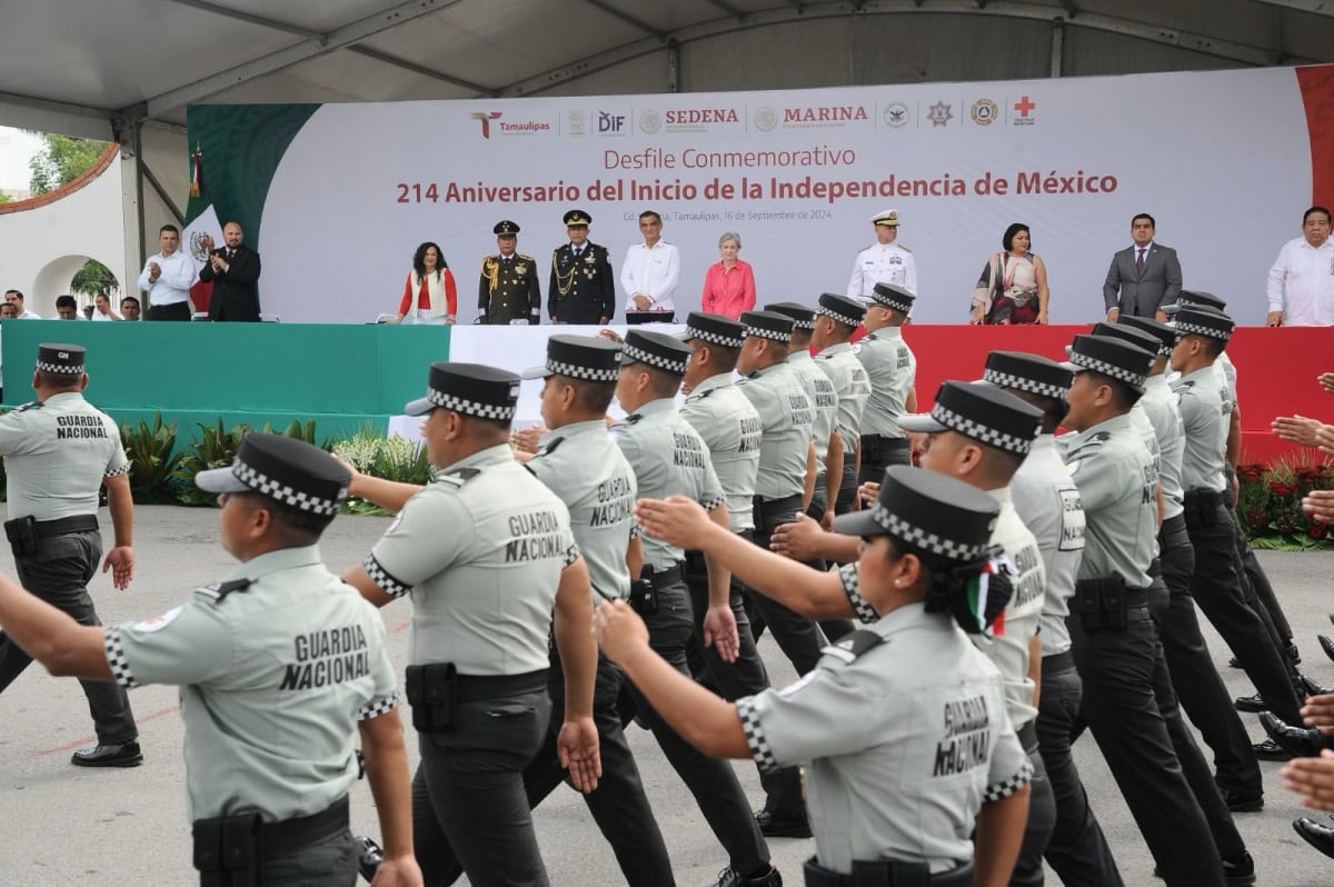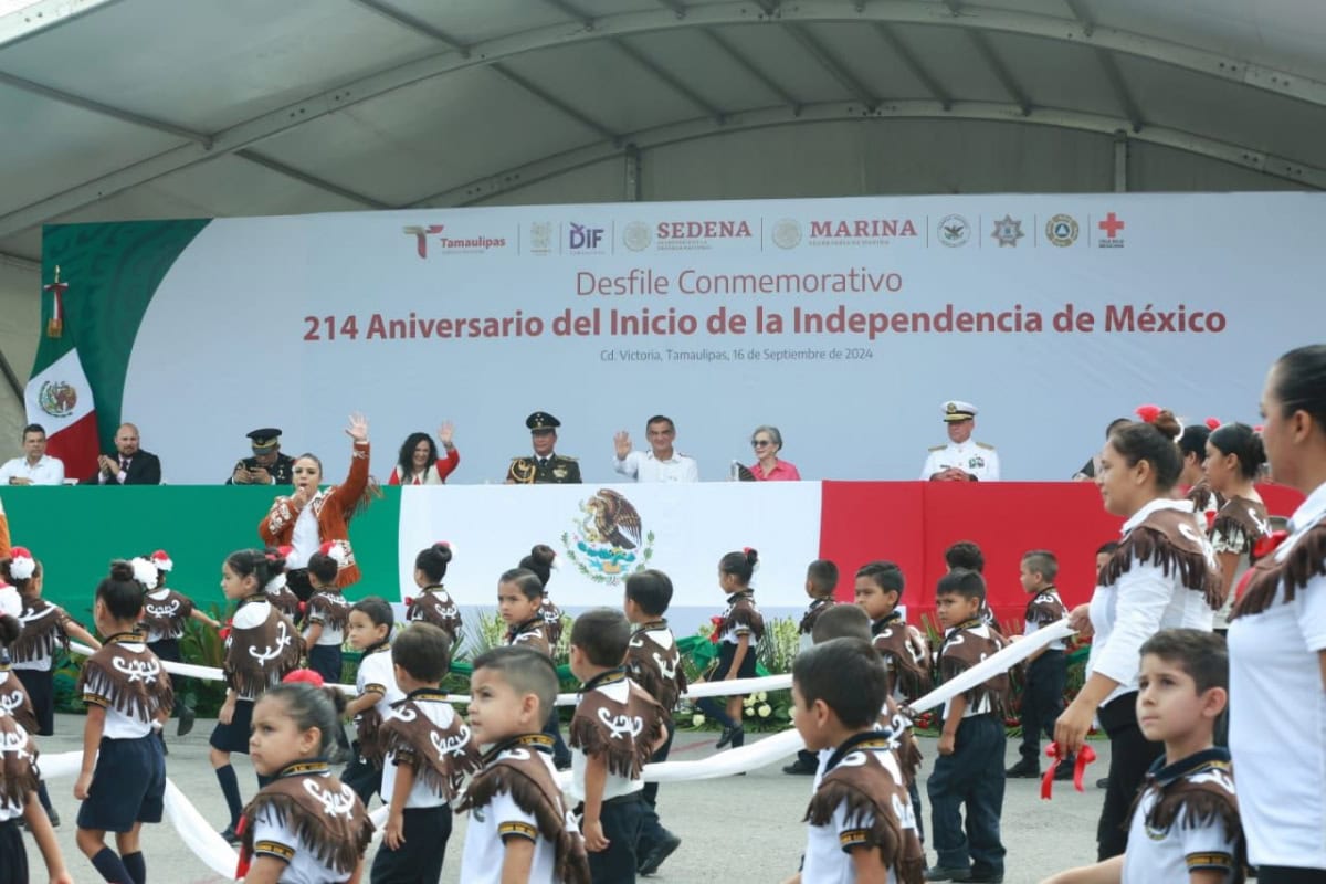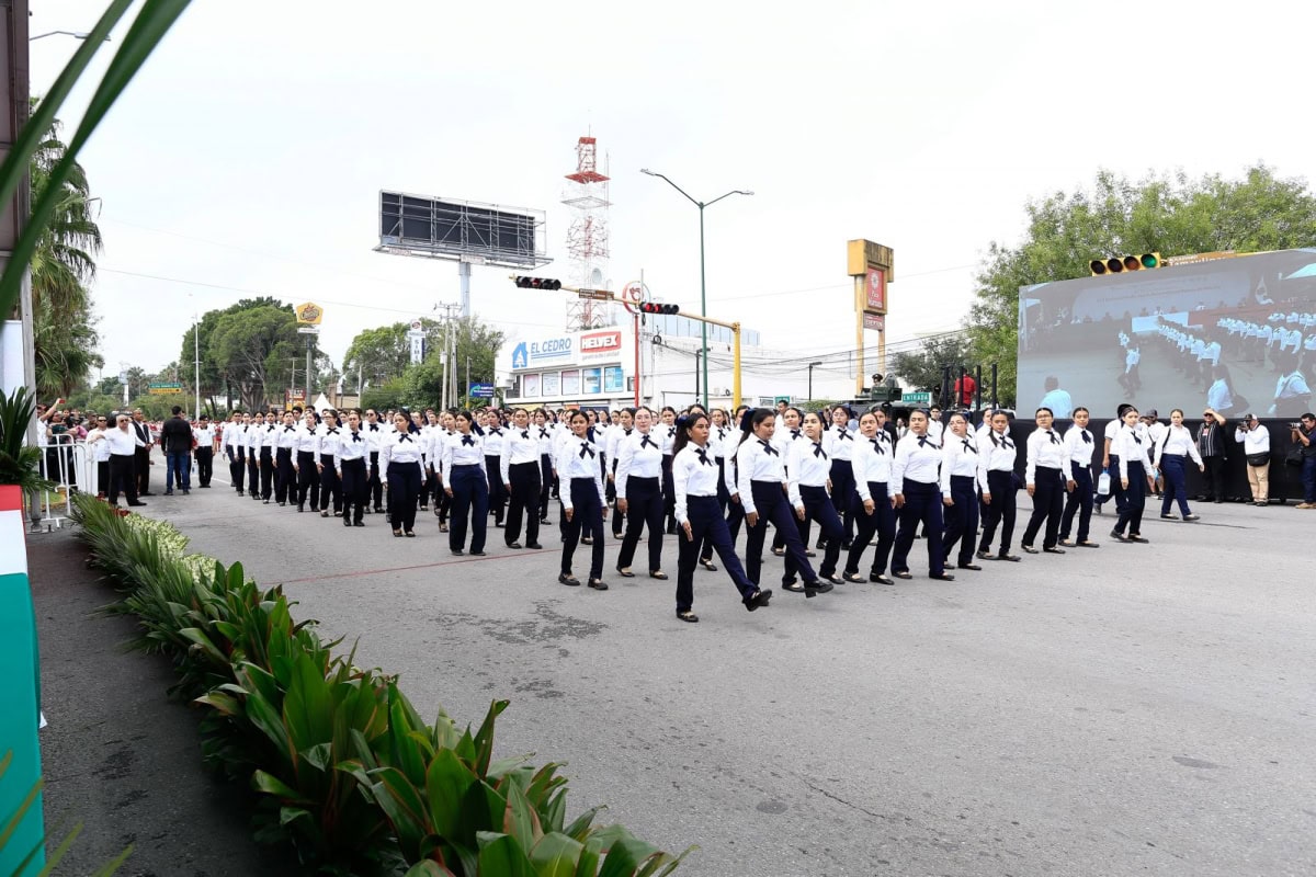 Acompañado por la presidenta del DIF Tamaulipas, María de Villarreal, así como por el general Julio César Islas Sánchez, comandante de la 48 Zona Militar, y el contralmirante Carlos Eduardo L’Eglise Escamilla, comandante de la Primera Región Naval, el gobernador presenció el paso de los contingentes a lo largo de la Avenida Tamaulipas, donde miles de familias tamaulipecas se congregaron.