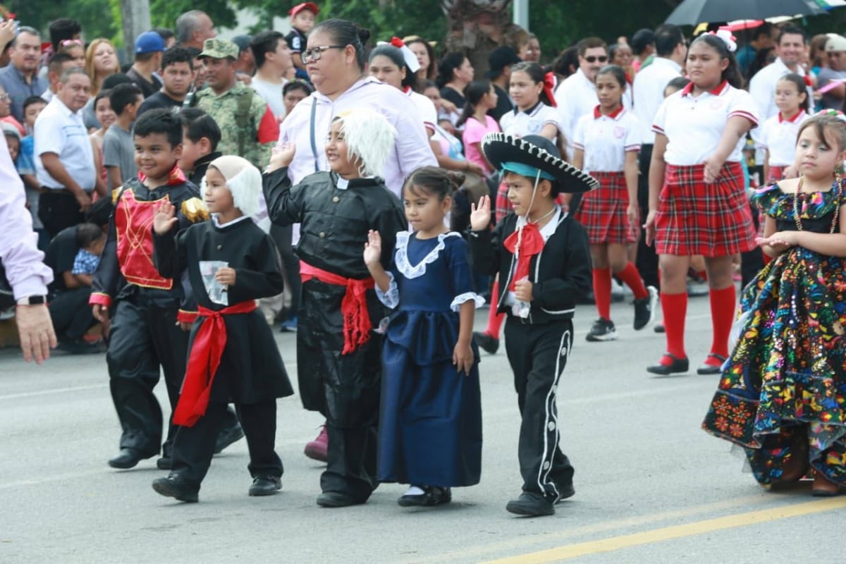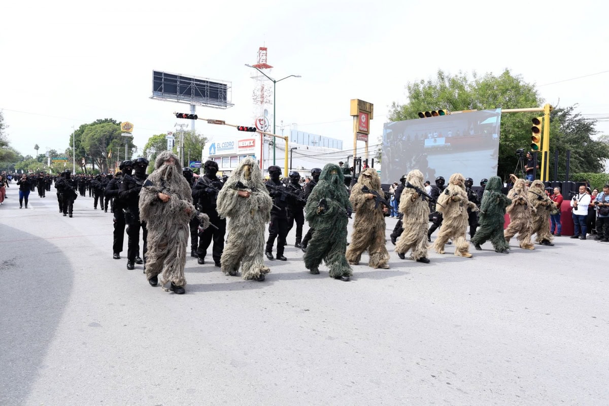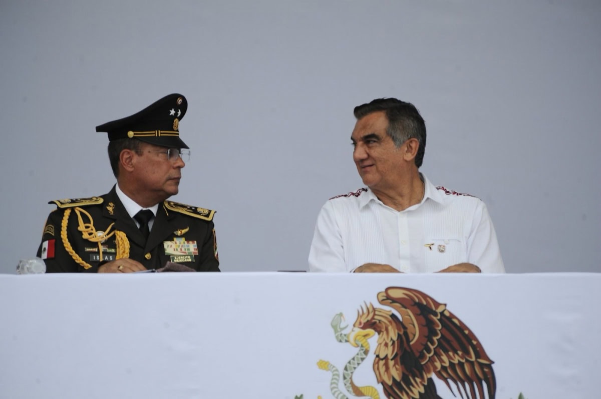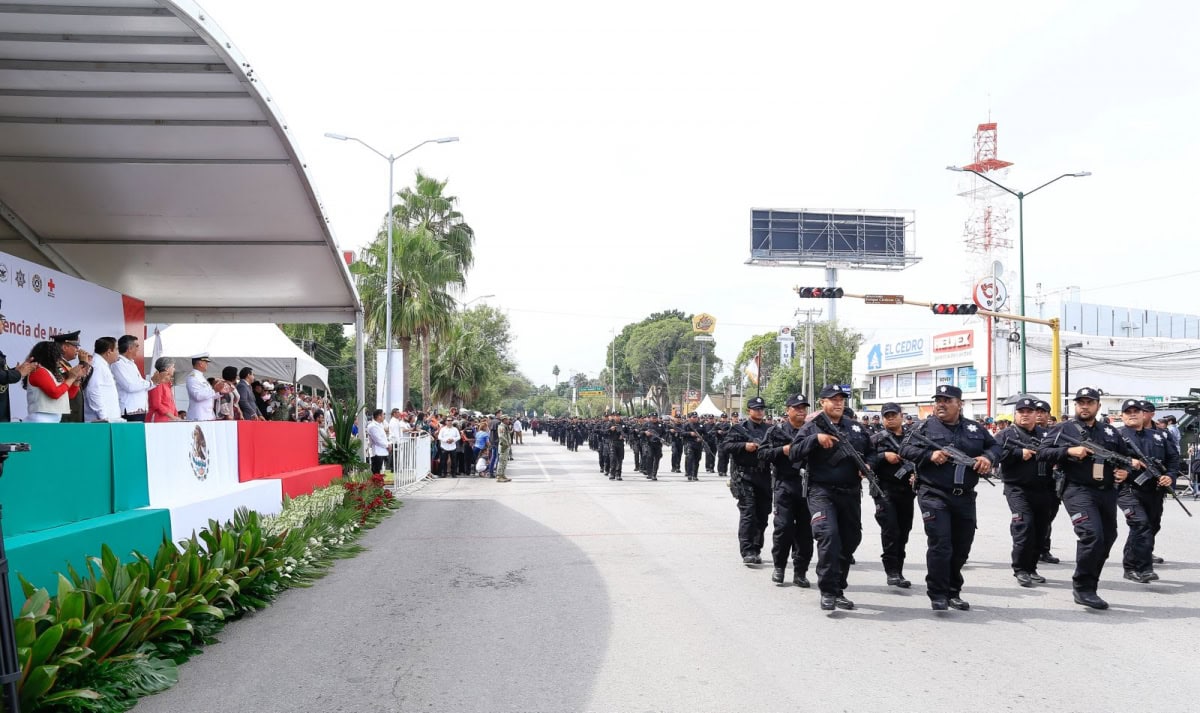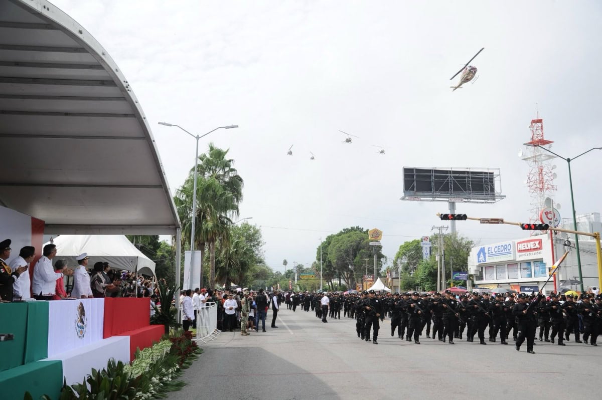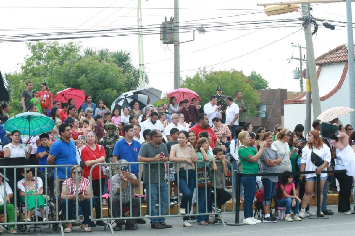 Acompañado por la presidenta del DIF Tamaulipas, María de Villarreal, así como por el general Julio César Islas Sánchez, comandante de la 48 Zona Militar, y el contralmirante Carlos Eduardo L’Eglise Escamilla, comandante de la Primera Región Naval, el gobernador presenció el paso de los contingentes a lo largo de la Avenida Tamaulipas, donde miles de familias tamaulipecas se congregaron.