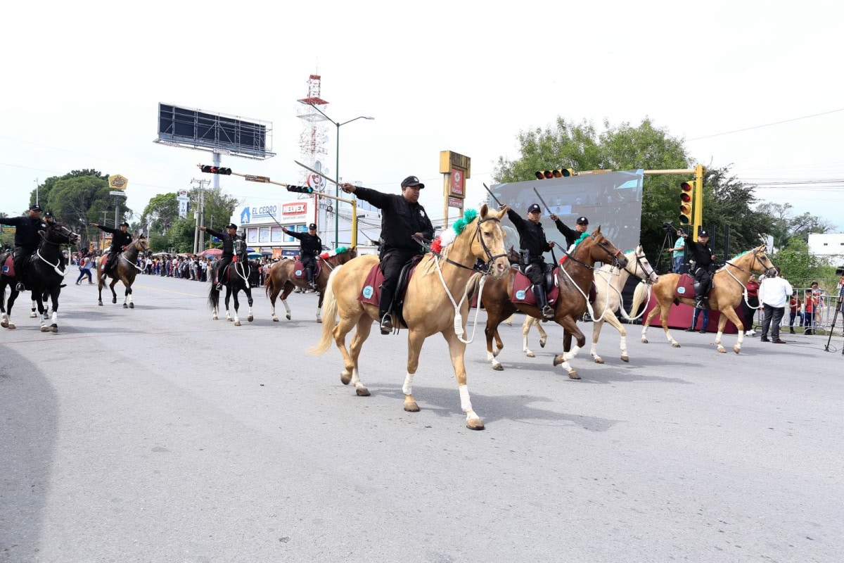 En el desfile también participaron 38 vehículos militares, 16 vehículos de la Guardia Nacional, 42 vehículos y cinco helicópteros de la Guardia Estatal, cuatro vehículos de Protección Civil y Bomberos, siete vehículos de la Cruz Roja, y 85 caballos pertenecientes a la Federación Mexicana de Cabalgantes, la Asociación de Charros Praxedis Baboa y la Unidad de Agrupamiento Montada de la Secretaría de Seguridad Pública, además de 34 perros entrenados.