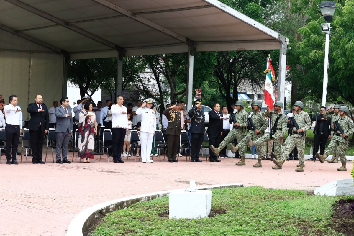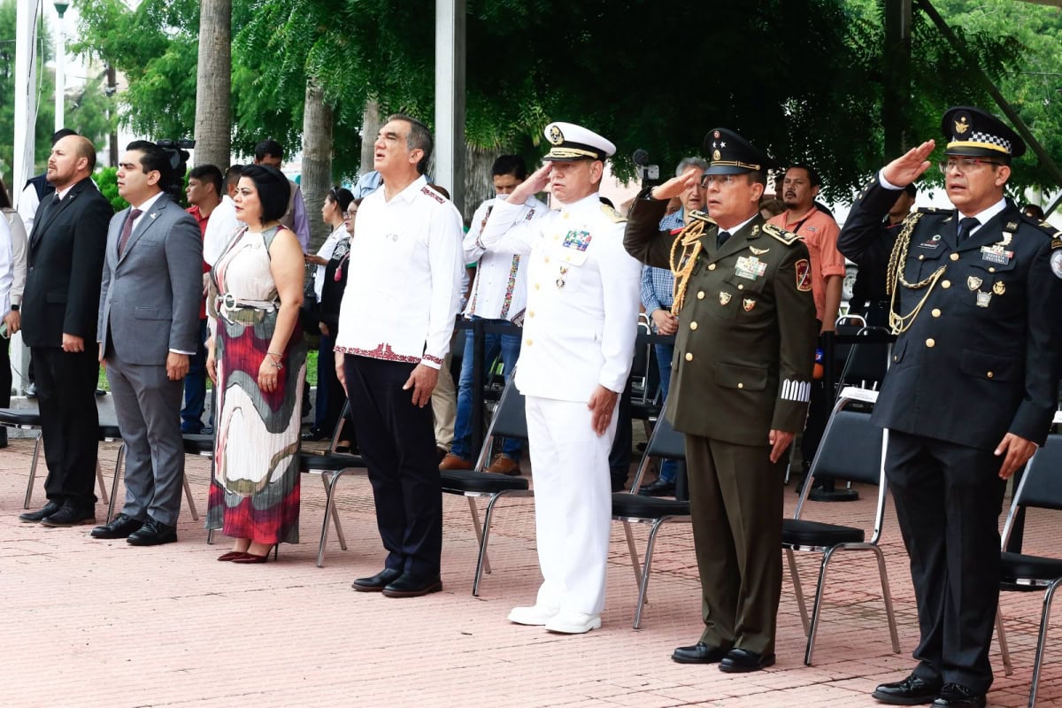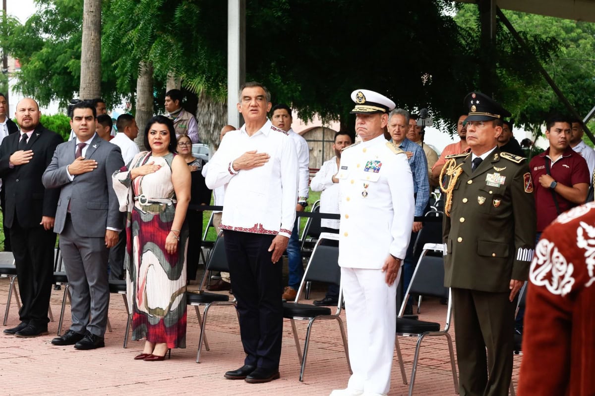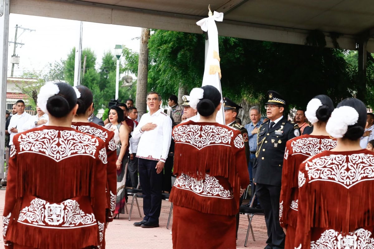 La ceremonia cívica se realizó en la Plaza de los Héroes, donde se rindieron honores a la bandera y se entonaron, con fervor patriótico, el Himno Nacional y el Himno a Tamaulipas y posteriormente se montó esta guardia de honor.
