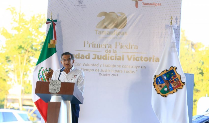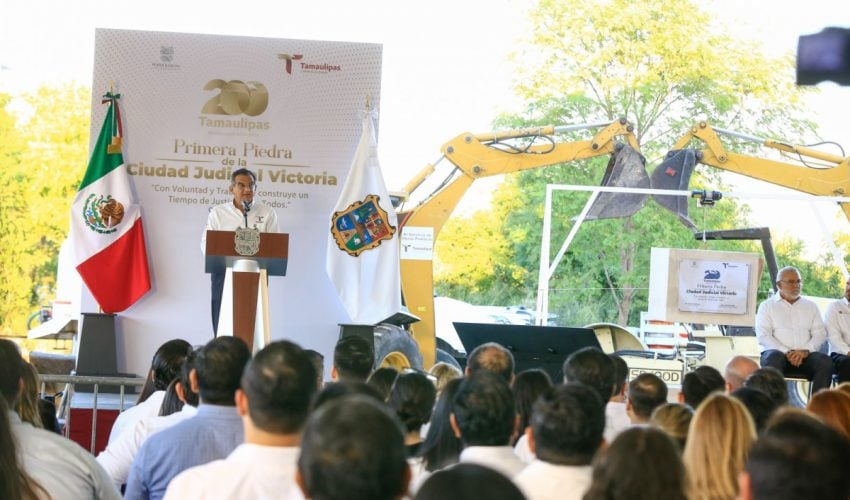 Ciudad Victoria, Tamaulipas.- Al colocar la primera piedra de la construcción de la nueva Ciudad Judicial en Victoria, que tendrá una inversión de 275 MDP, el gobernador Américo Villarreal Anaya, reiteró todo su apoyo para la modernización y dignificación de las condiciones materiales para el desempeño de la delicada misión de impartir justicia.