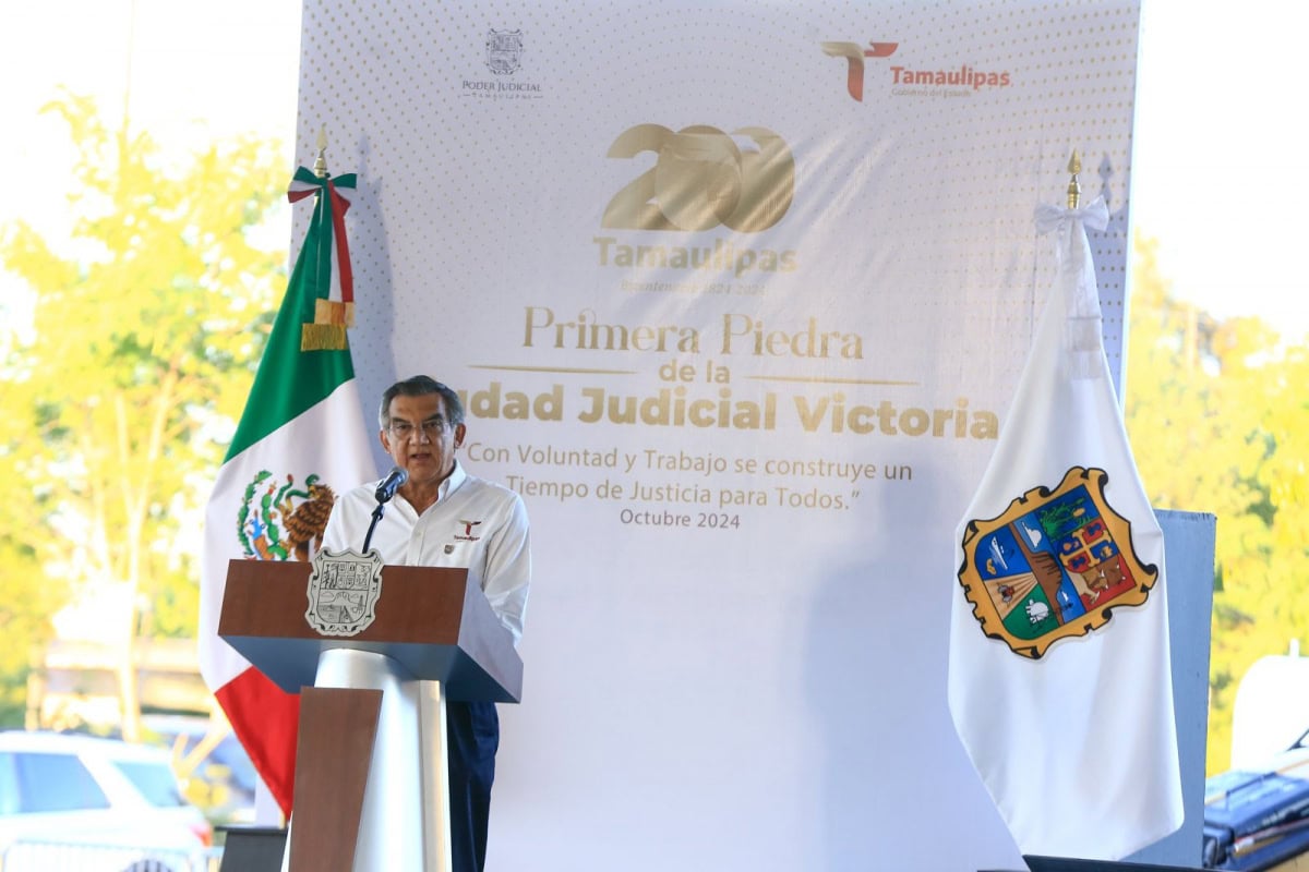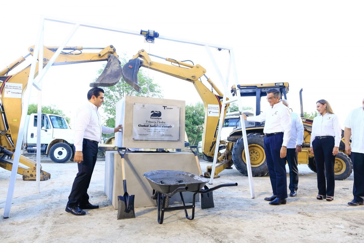 Ciudad Victoria, Tamaulipas.- Al colocar la primera piedra de la construcción de la nueva Ciudad Judicial en Victoria, que tendrá una inversión de 275 MDP, el gobernador Américo Villarreal Anaya, reiteró todo su apoyo para la modernización y dignificación de las condiciones materiales para el desempeño de la delicada misión de impartir justicia.