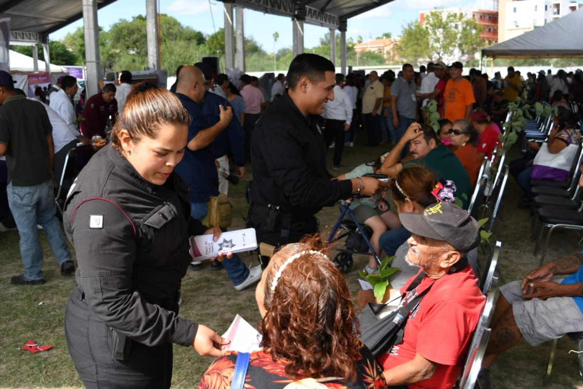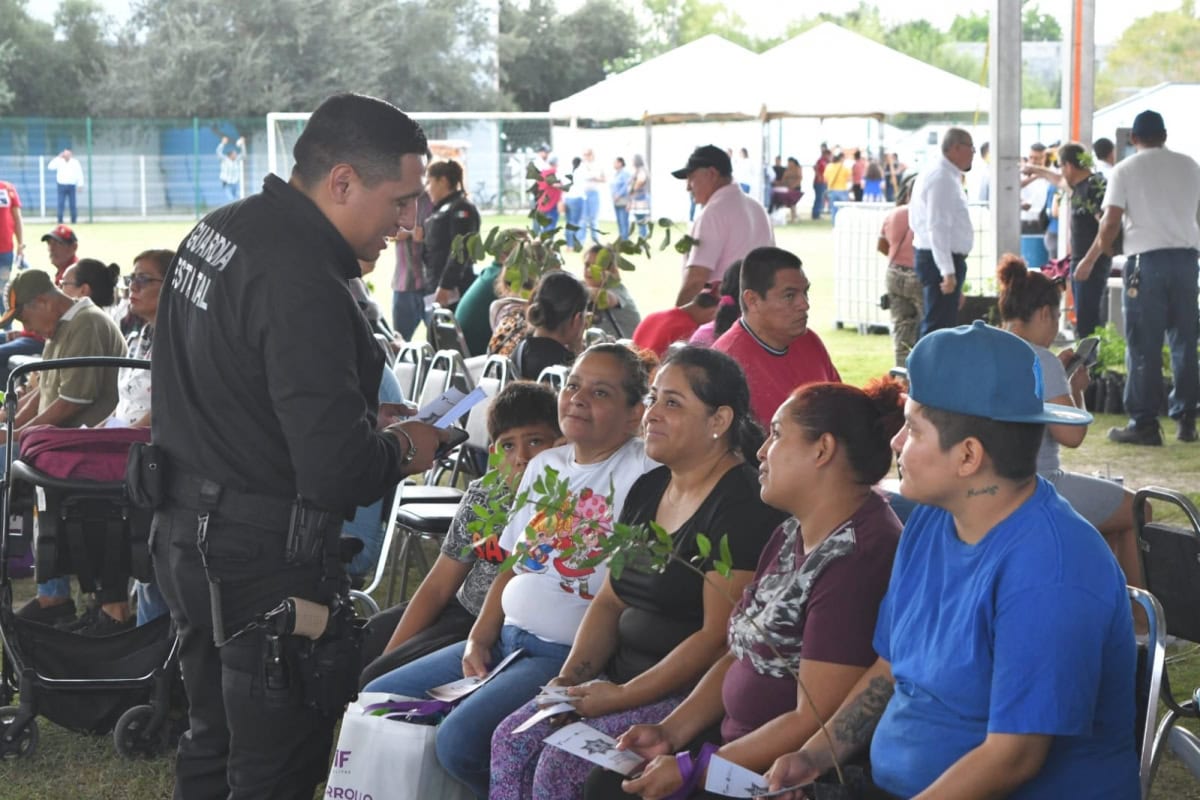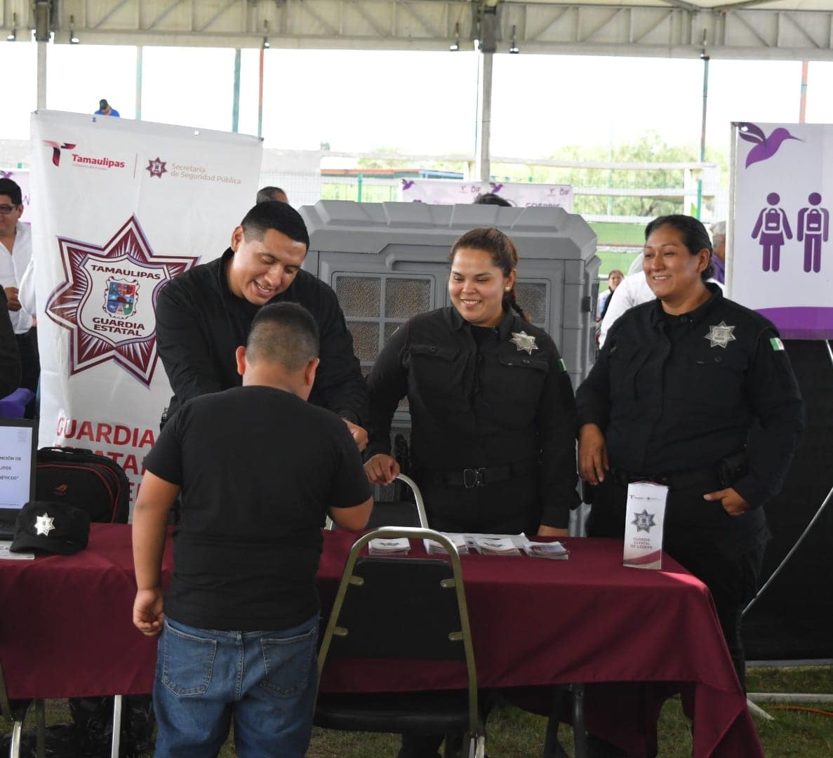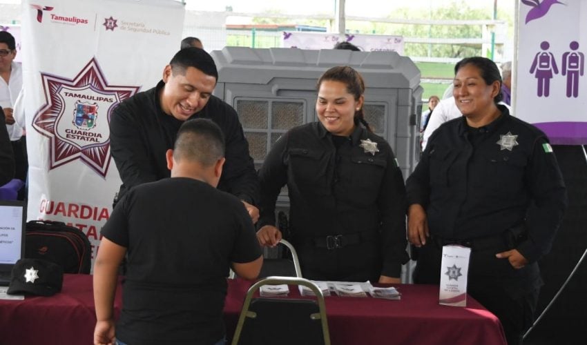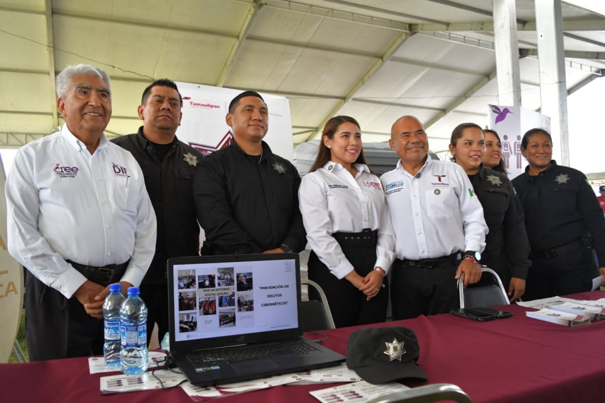 Miguel Alemán, Tamaulipas. – Al ser la familia el pilar de la sociedad y el primer núcleo para prevenir el delito, la Secretaría de Seguridad Pública de Tamaulipas (SSPT) se sumó a la Brigada “Transformando Familias” organizada por el Sistema DIF estatal que preside la doctora María Santiago de Villarreal en el municipio de Miguel Alemán.
