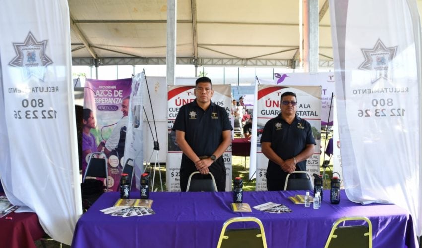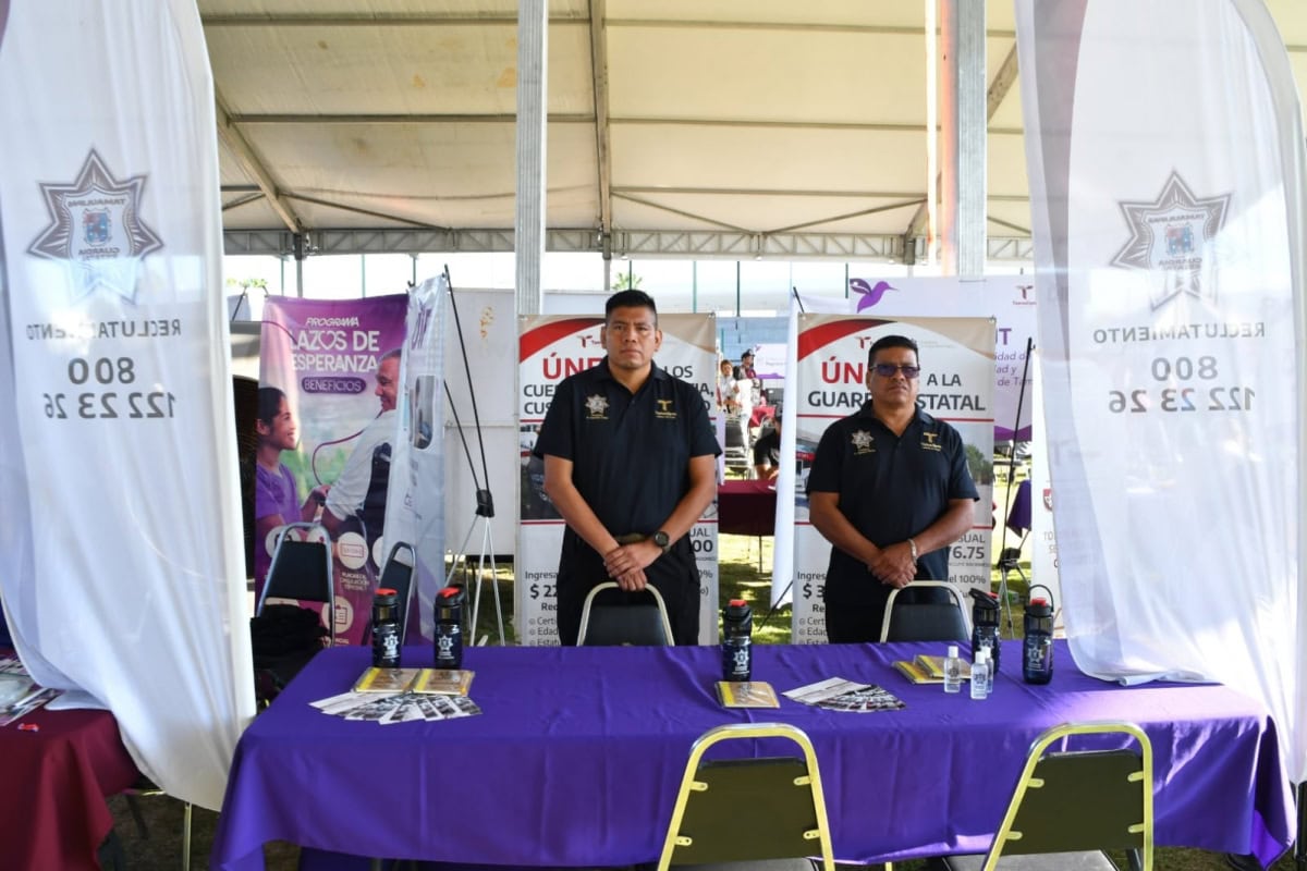En representación de esta dependencia asistieron las unidades de Guardia Estatal Cibernética y Guardia Estatal de Género, así de la Universidad de Seguridad y Justicia (USJT) y de reclutamiento quienes aproximaron las vacantes operativas a la población de este municipio con la finalidad de incrementar el estado de fuerza de la Guardia Estatal; Guías Técnicos; y Cuerpos de Vigilancia, Custodia y Seguridad.