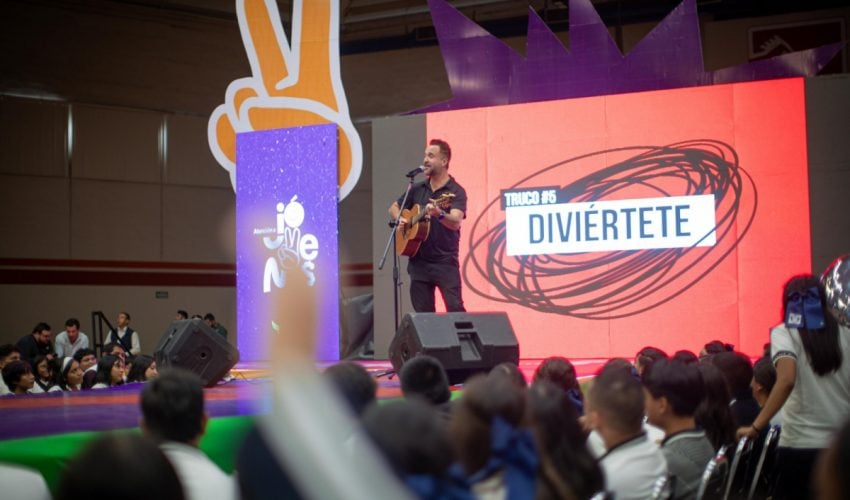 Ciudad Victoria, Tamaulipas. Con la presencia de más de 2 mil 500 jóvenes estudiantes de los niveles básico, medio superior y superior de esta ciudad, el vocalista de la agrupación Los Claxons, Nacho Llantada, presentó la conferencia “La vida como una fiesta”, en un evento organizado por el Sistema para el Desarrollo Integral de la Familia de Tamaulipas que preside la doctora María de Villarreal.