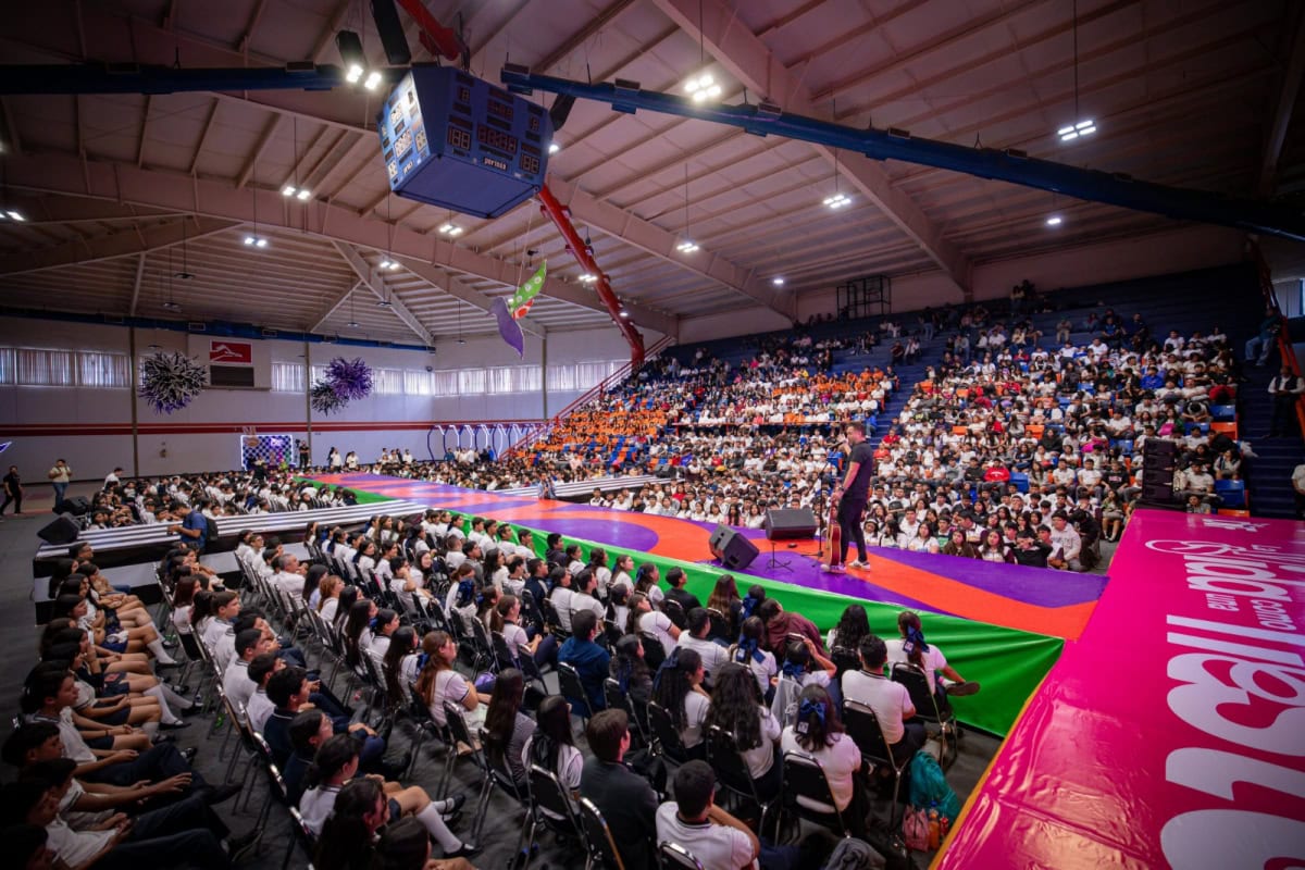 Ante miles de jóvenes en el gimnasio multidisciplinario de la UAT Victoria, el músico de Los Claxons compartió experiencias y vivencias de su carrera personal y profesional