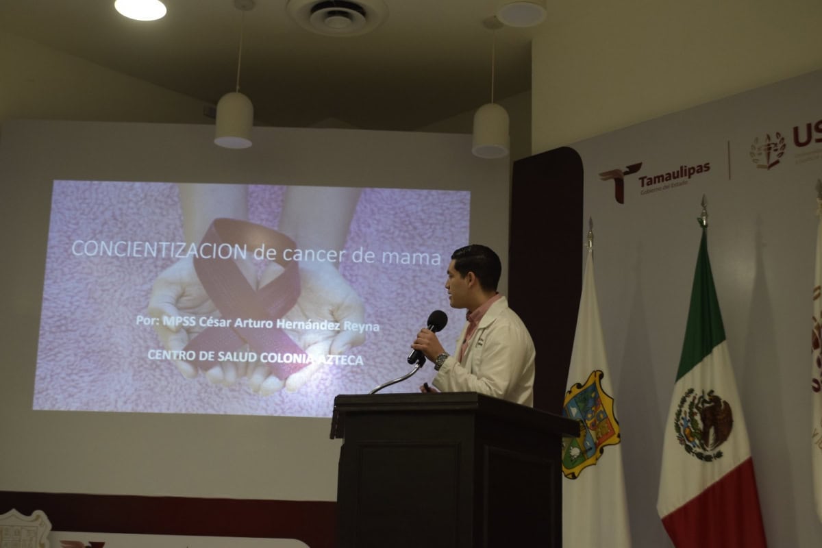 La ponencia incluyó temas encaminados a la prevención y detección oportuna del cáncer de mama así como un taller de autoexploración, que estuvieron a cargo de personal médico y de enfermería del centro de salud de la colonia Azteca, con sede en Ciudad Victoria.