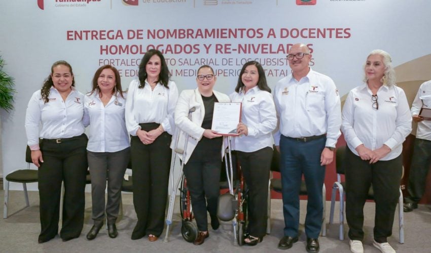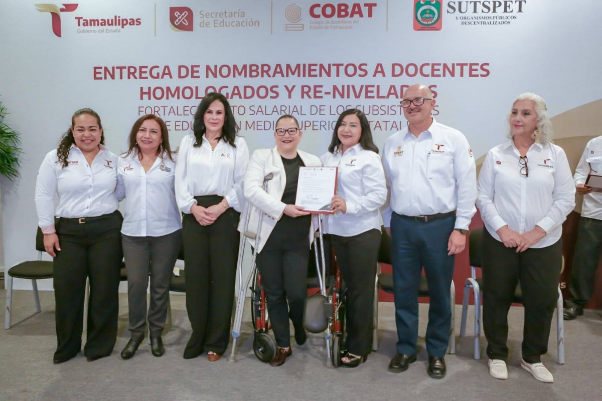 Ciudad Victoria, Tamaulipas.- Con el propósito de brindarles una certeza laboral y hacer un acto de justicia, luego de años de trabajo, maestras y maestros pertenecientes al Colegio de Bachilleres del Estado de Tamaulipas (COBAT) recibieron sus nombramientos de homologación y renivelación docente.