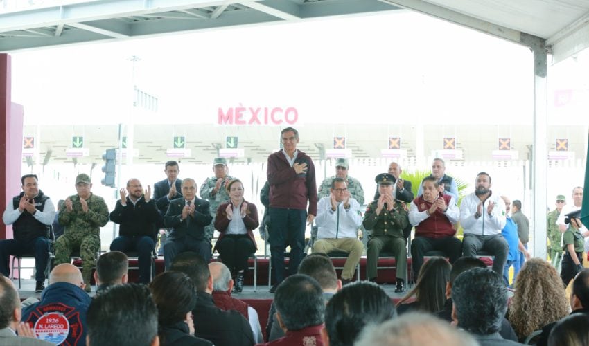 Acompañado por Juan Carlos Mendoza Sánchez, cónsul general de México en Nuevo Laredo, y por el alcalde de Laredo, Texas, Víctor Treviño, así como por representantes de los tres órdenes de gobierno que participan en este operativo, Villarreal Anaya dio la más cordial bienvenida a las y los paisanos y reiteró que recibirán una atención integral, honesta y diligente en los trámites, y se les facilitará una migración ordenada, legal, digna, «y por supuesto un feliz retorno a casa».