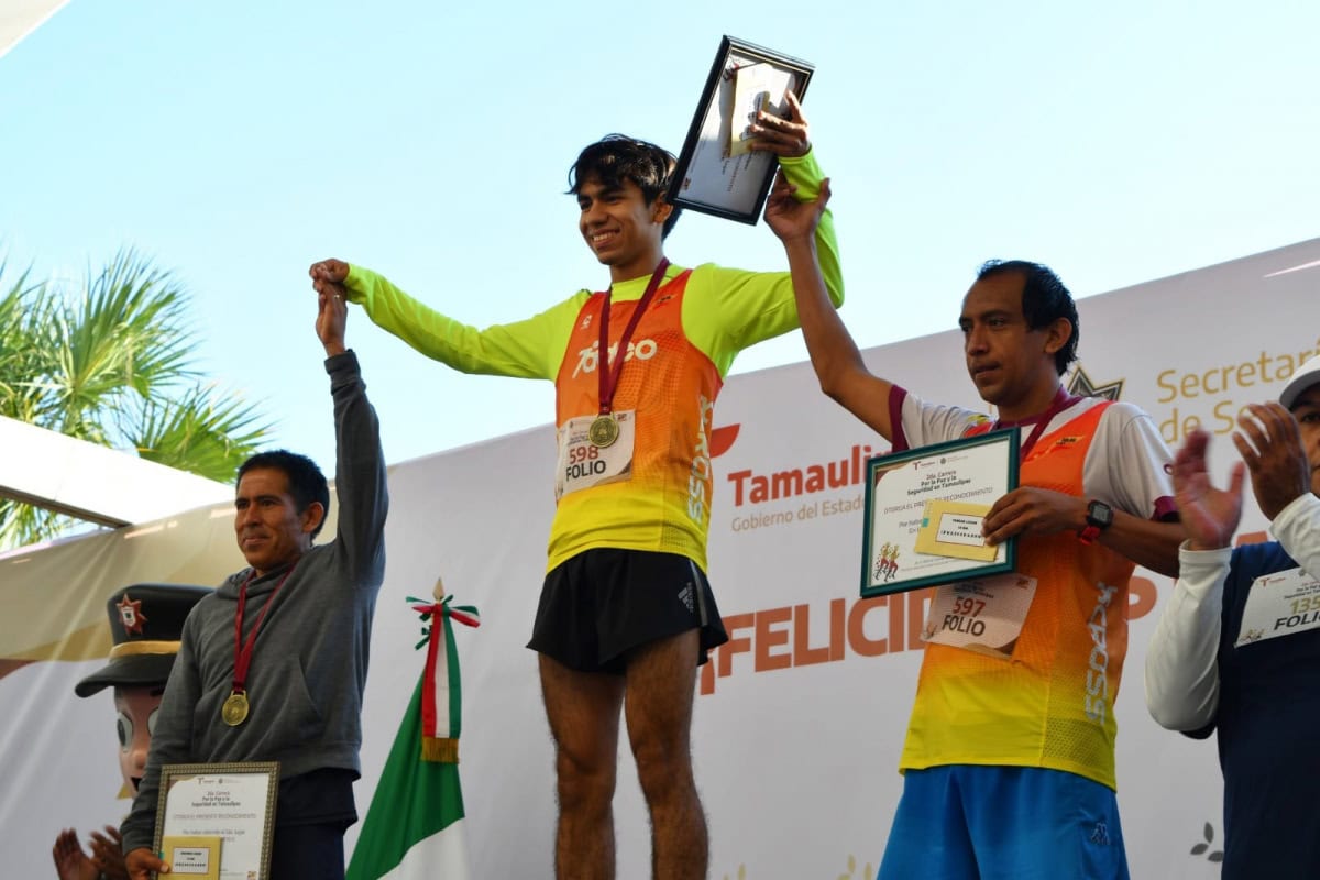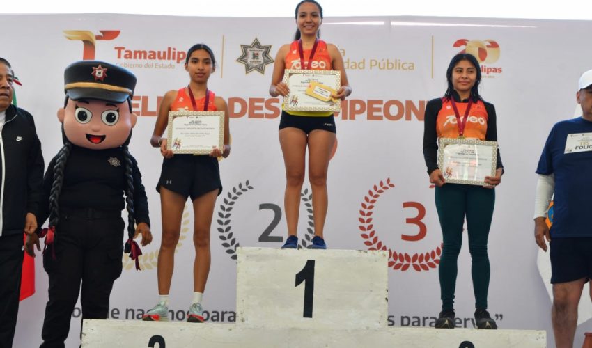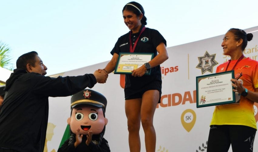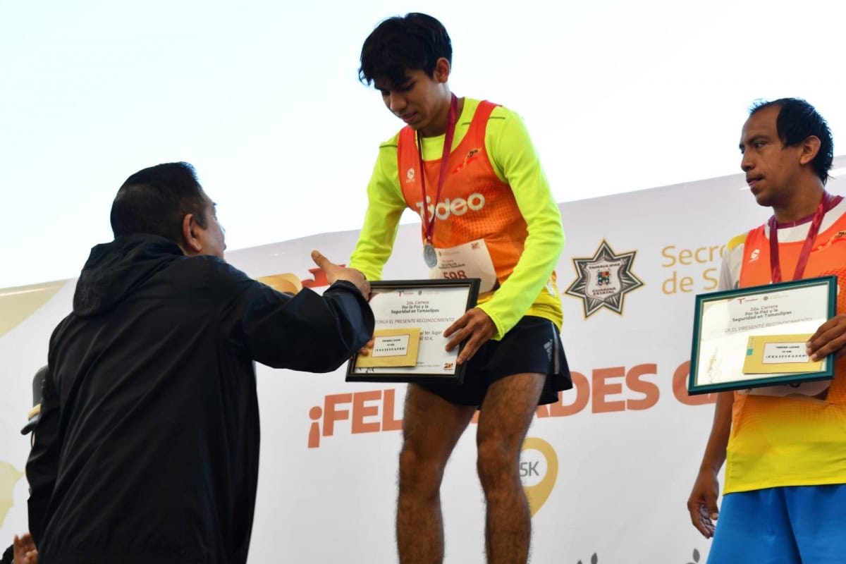 Una vez obtenidos los primeros lugares en la rama varonil y femenil de ambas distancias, el secretario de Seguridad Pública de Tamaulipas, Sergio Hernando Chávez García; el rector de la USJT, Willy Zúñiga Castillo; y el director del Consejo de Desarrollo Policial, Igor Mendoza Ruiz entregaron los reconocimientos y premios económicos a las y los ganadores.