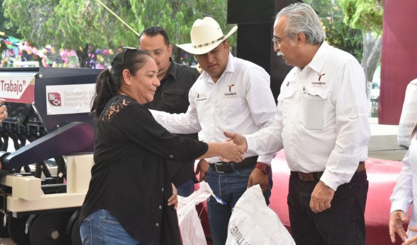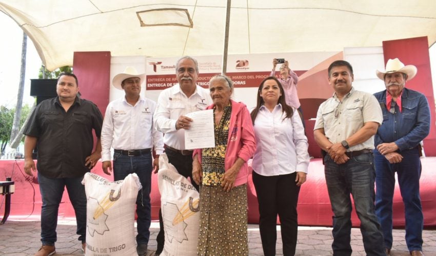 Por su parte, Eliseo Camacho Nieto, subsecretario de Desarrollo Agrícola refirió que «desde la administración del gobernador Américo Villarreal Anaya, hemos estado juntos en esta lucha y ante esta problemática, hoy estamos aquí con ustedes para hacer entrega de semilla de trigo y de sembradoras, decirles que con esta semilla iniciamos el plan piloto en la búsqueda de alternativas que suplan el plantío de sorgo, sabemos de la importancia de la región como lo es el grano rojo».