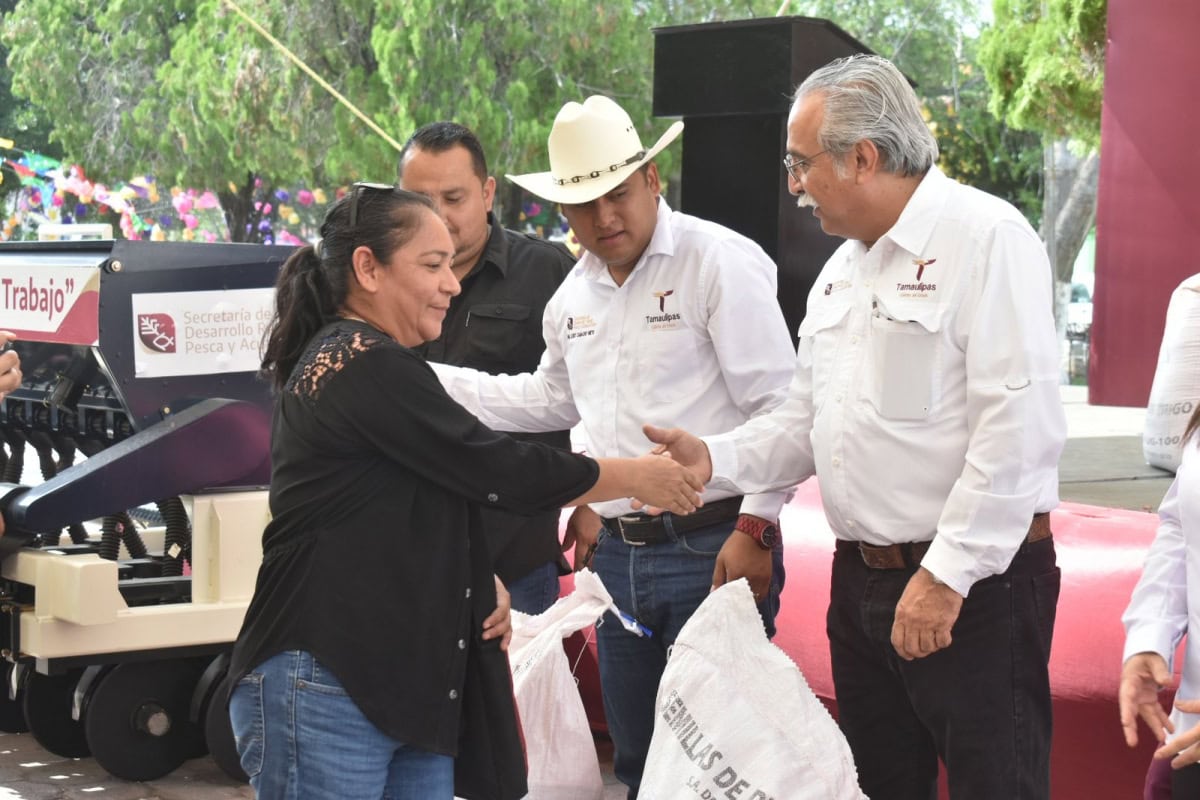 San Fernando, Tamaulipas. –  Como un compromiso del gobernador Américo Villarreal Anaya con el sector agropecuario de Tamaulipas, inició  la entrega de semilla de trigo y sembradoras a los municipios de Burgos, Méndez y San Fernando, como parte del Programa Estatal Extraordinario a personas productoras de sorgo/o trigo bajo el esquema de complemento a los procesos productivos de cultivos del ciclo agrícola otoño-invierno 2024-2025.