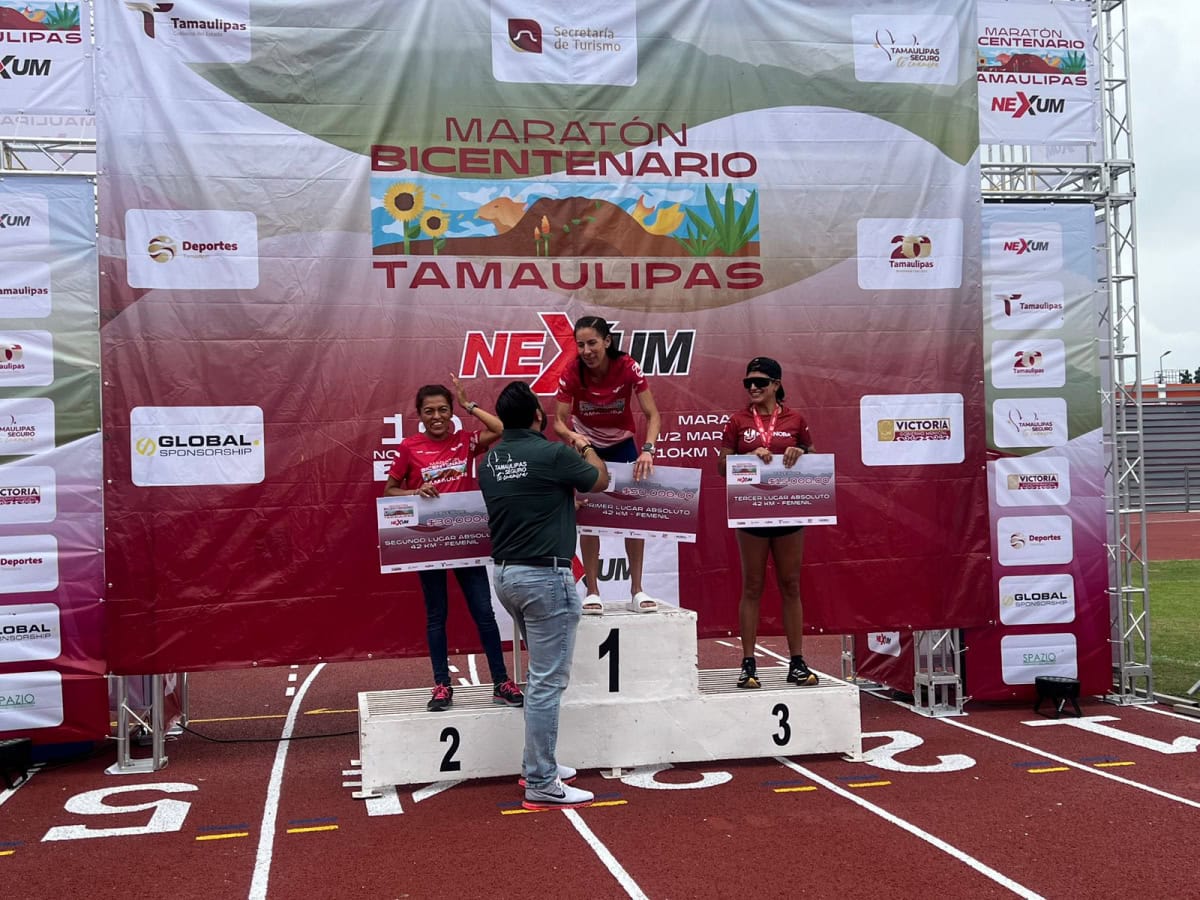 Los ganadores de lo más alto del podio en los 42 kilómetros del maratón, y quienes se llevaron una bolsa de 50 mil pesos, respectivamente, fueron Argentina Valdespeñas Cerna, quien logró un tiempo oficial de 3 horas con 50 segundos; en segundo lugar, Anahí Rivera Olmedo; y en tercer lugar, Elida Elizabeth Contreras Barrón, de Tamaulipas.